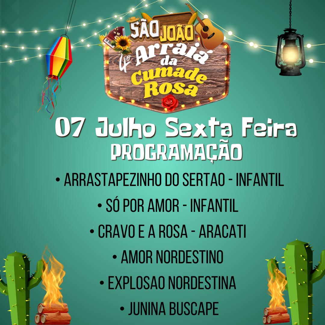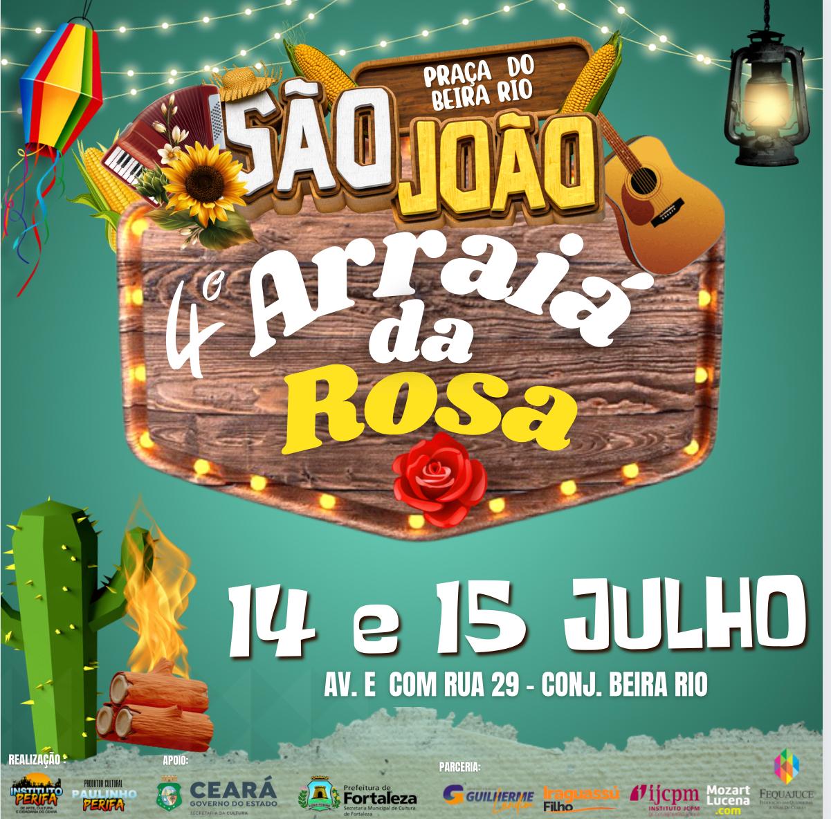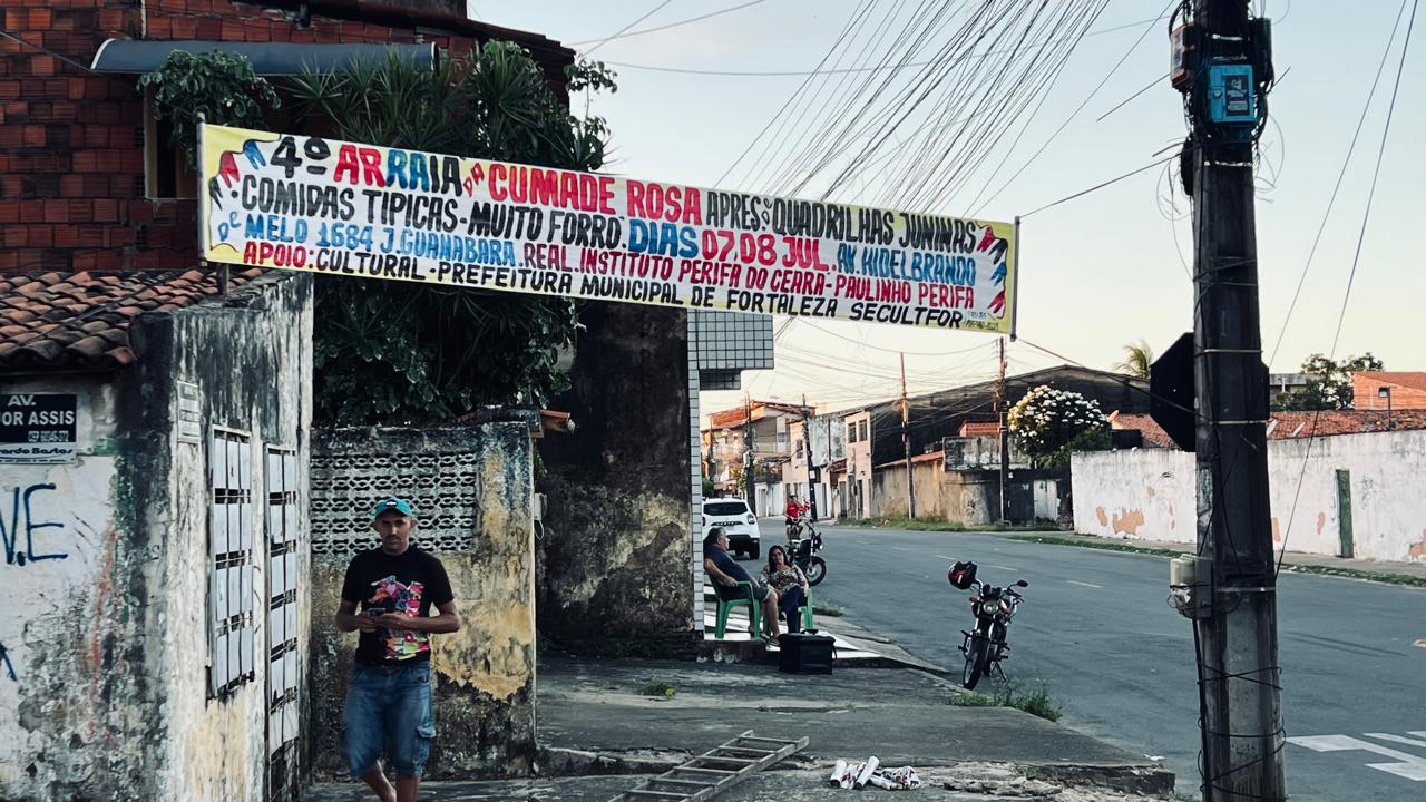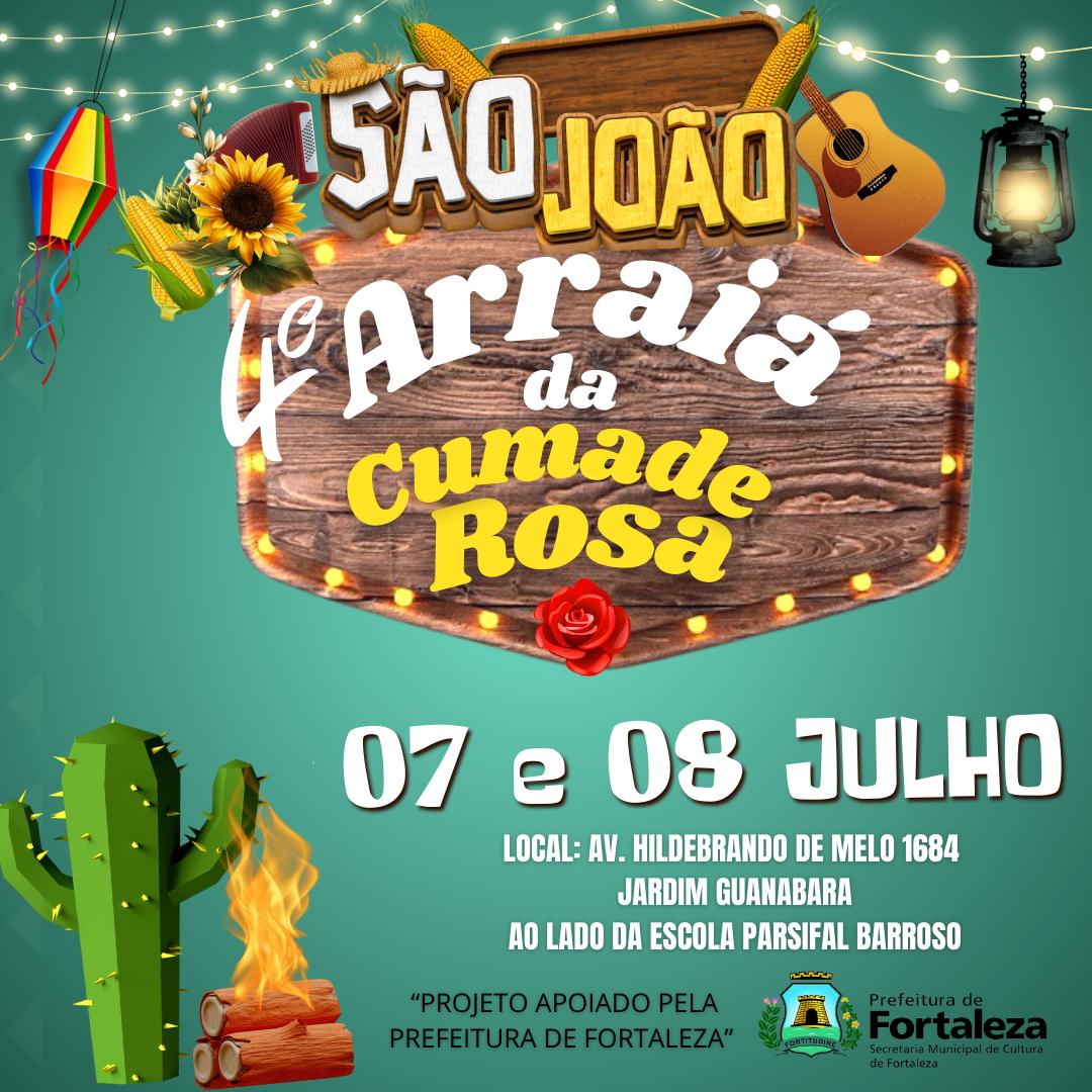 O Arraiá da Cumade Rosa é um dos festivais juninos mais tradicionais do Ceará, criado com o objetivo de preservar e promover as manifestações artísticas do Nordeste. Realizado pelo Instituto Perifa de Arte, Cultura e Cidadania do Ceará (INSTITUTO PERIFA), o evento surgiu em 2019, impulsionado pelo desejo dos moradores da Rua Rosinha Sampaio, em Fortaleza, de manter vivas suas tradições culturais. O festival homenageia Dona Maria Rosa, uma figura emblemática da comunidade, conhecida por seu amor à cultura popular e seu espírito trabalhador.Com o passar dos anos, o Arraiá da Cumade Rosa consolidou-se como um importante espaço para a valorização das quadrilhas juninas, promovendo também a inclusão social e gerando oportunidades econômicas para a região. O evento é marcado por uma programação diversificada que inclui campeonatos de quadrilhas juninas, apresentações musicais, barracas com comidas típicas e manifestações culturais populares, além de estimular a economia local por meio da participação de pequenos empreendedores, artesãos e comerciantes.