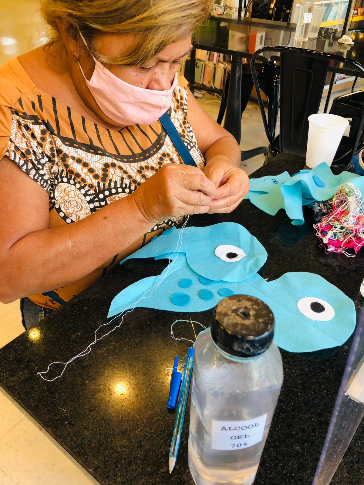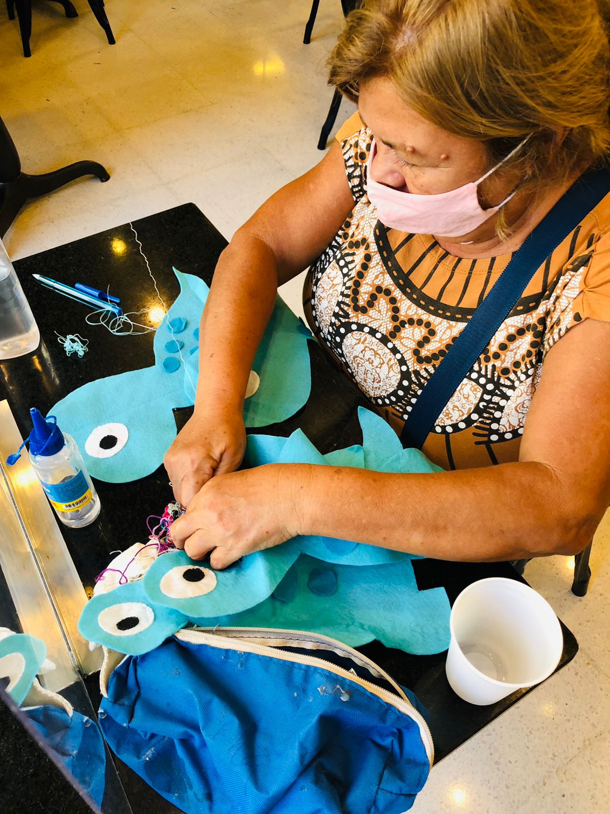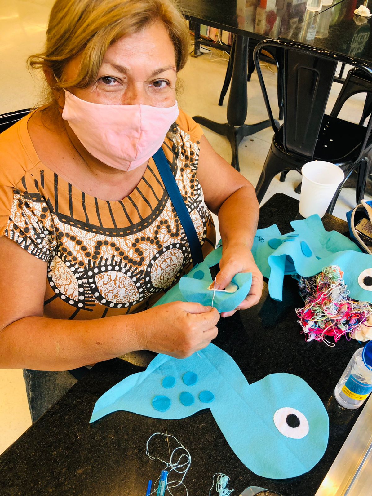 7. 2021- Produção de bonecos de dinossauros com feltro para as crianças em situação de rua na praça da estação de Fortaleza.