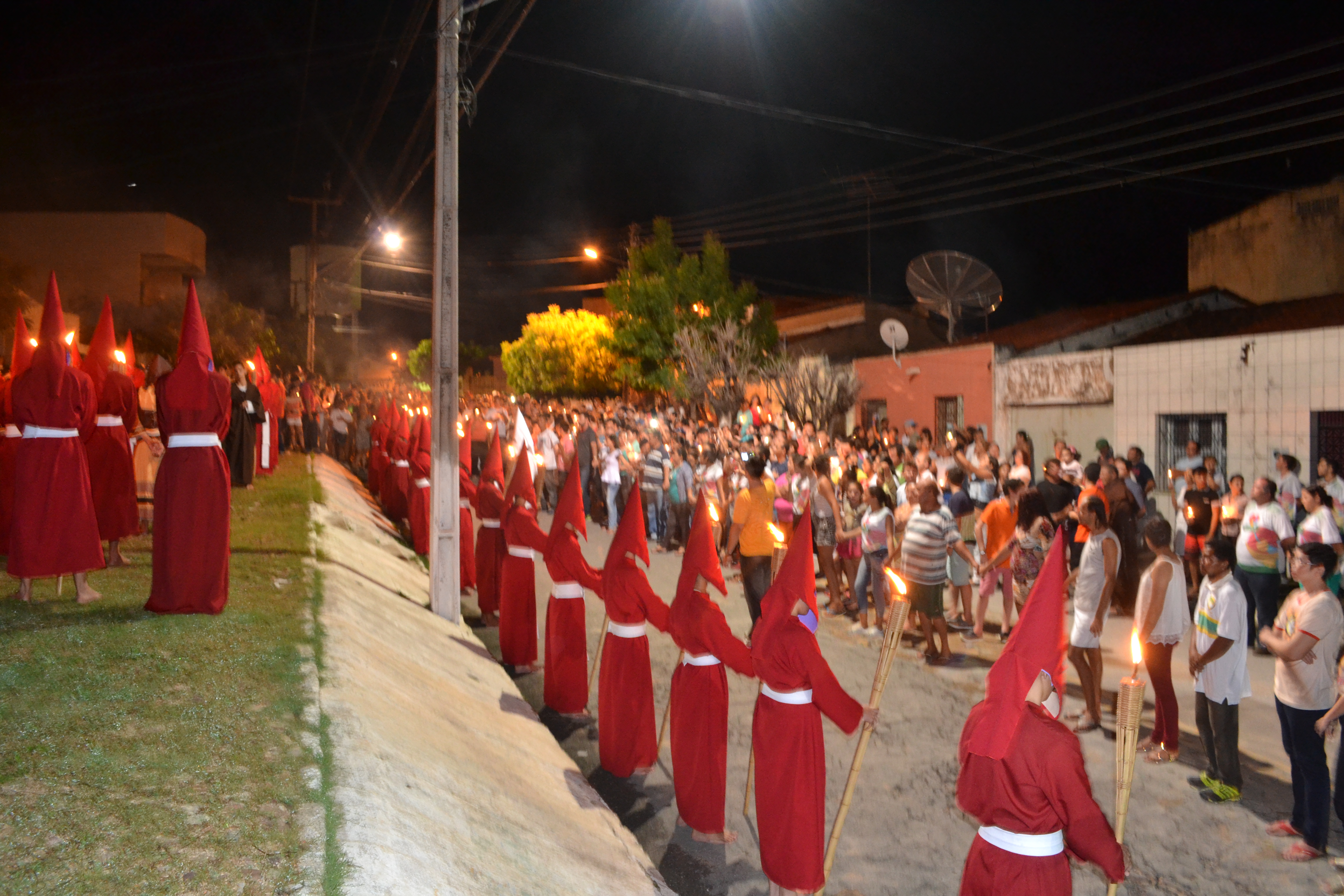 Multidão na madrugada com a procissão do fogaréu
