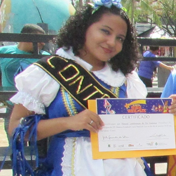 Sou estudante de Pedagogia e participante de grupos artísticos e de oficinas educativas de projetos no bairro da Lagoa Redonda e da Sabiaguaba.Além disso, faz parte da coordenação de vários grupos culturais do bairro: Malhação de Judas é cultura na Lagoa Redonda, Quadrilha Flor da Bela, , etc.