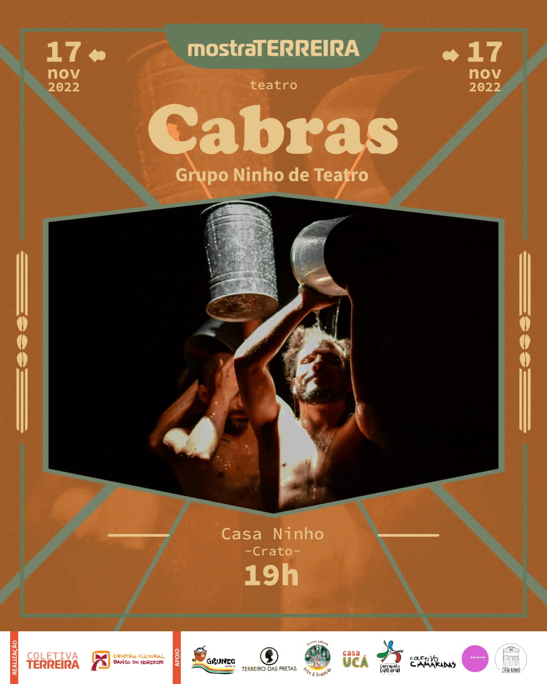 Nos aquilombamos para acionar e friccionar os saberes e fazeres da cultura africana e afro-brasileira no território do Cariri cearense. Nossa aposta é afirmar práticas e pensamentos artísticos que cruzem nossas vivências negras em nossas criações e articular ações artístico-político-sociais evidenciando nossas presenças nos mais diferentes espaços artísticos e culturais.