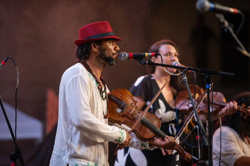 Agora traz aos palcos a Rabeca de Terreiro, um show permeado de memórias, cantigas e poesias protagonizado por uma rabeca solitária e ancestral.