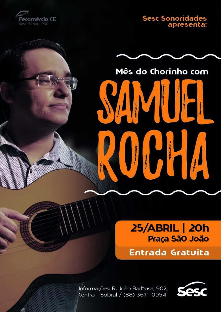 Samuel Rocha é compositor e instrumentista formado em Música pela Universidade Estadual do Ceará que tem se destacado na cena musical cearense pela sua dedicação ao violão de sete cordas, além da produção cultural de seus projetos. Construiu suas experiências tocando ao lado de grandes mestres como Grupo Época de Ouro, Arismar do Espírito Santo, Adelson Viana, Raul de Souza, Luizinho Calixto, Charles da Flauta, Zé Nogueira, Tarcísio Sardinha, Waldonys, dentre outros.Traz em sua identidade uma linguagem própria de tocar o violão 7 cordas construída com as suas experiências musicais com grandes mestres. Em suas composições, traz melodias contagiantes com sotaque nordestino, mesclando a sonoridade tradicional e contemporânea, passeando pelo choro, baião, xote, maxixe, frevo, gafieira, dentre outros.