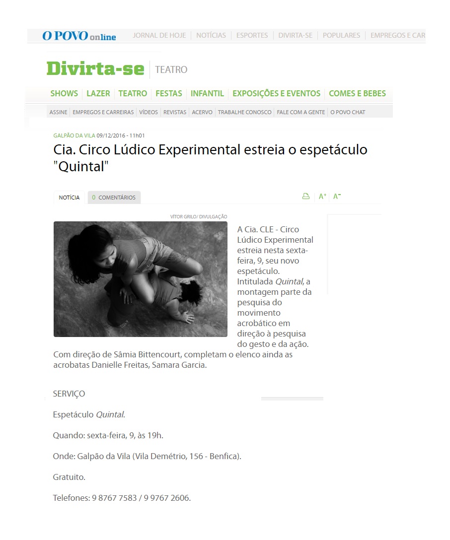 O Galpão da Vila é um novo espaço cultural que surge em Fortaleza no ano de 2015 da união de grupos e artistas com a intenção de fomentar os seus trabalhos e colaborar com o processo coletivo na cidade. Localizado no Benfica, o espaço agrega grupos que passeiam por diversas linguagens como teatro, circo, dança e artes visuais. O caráter independente e a autogestão tem marcado a vivência desse novo lugar que com o tempo pretende ser mais um espaço de resistência dentro da cidade de FortalezaVídeos
