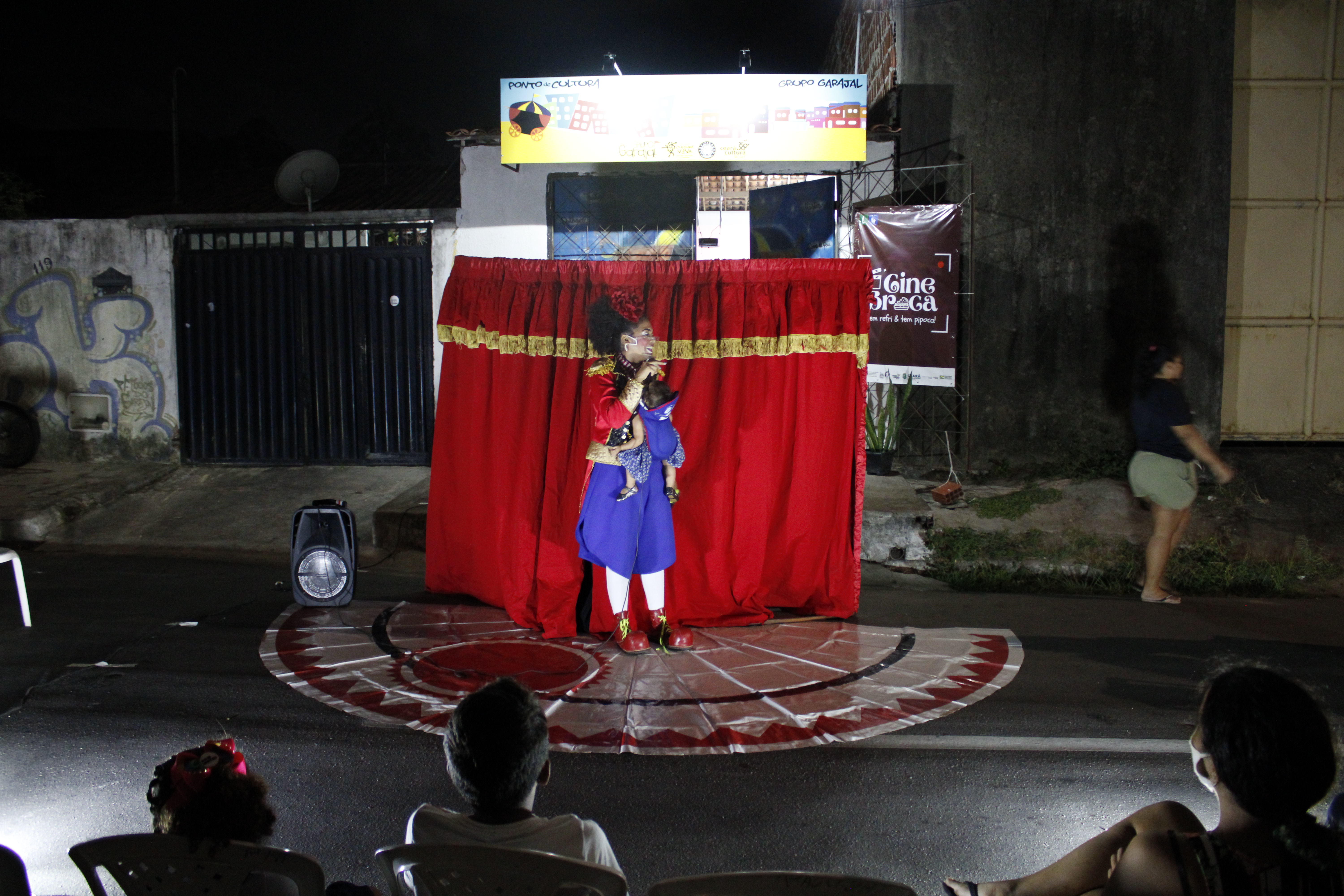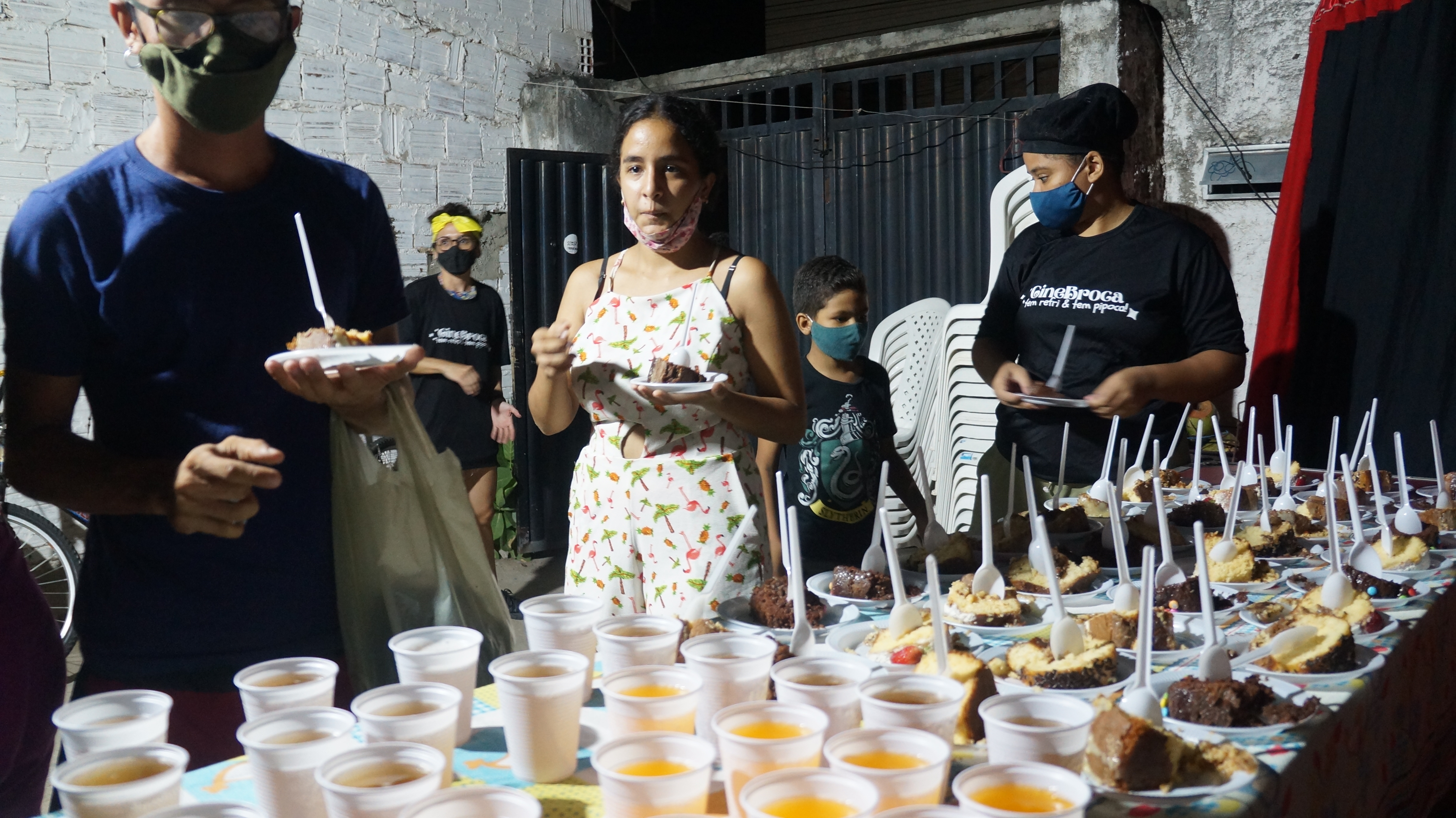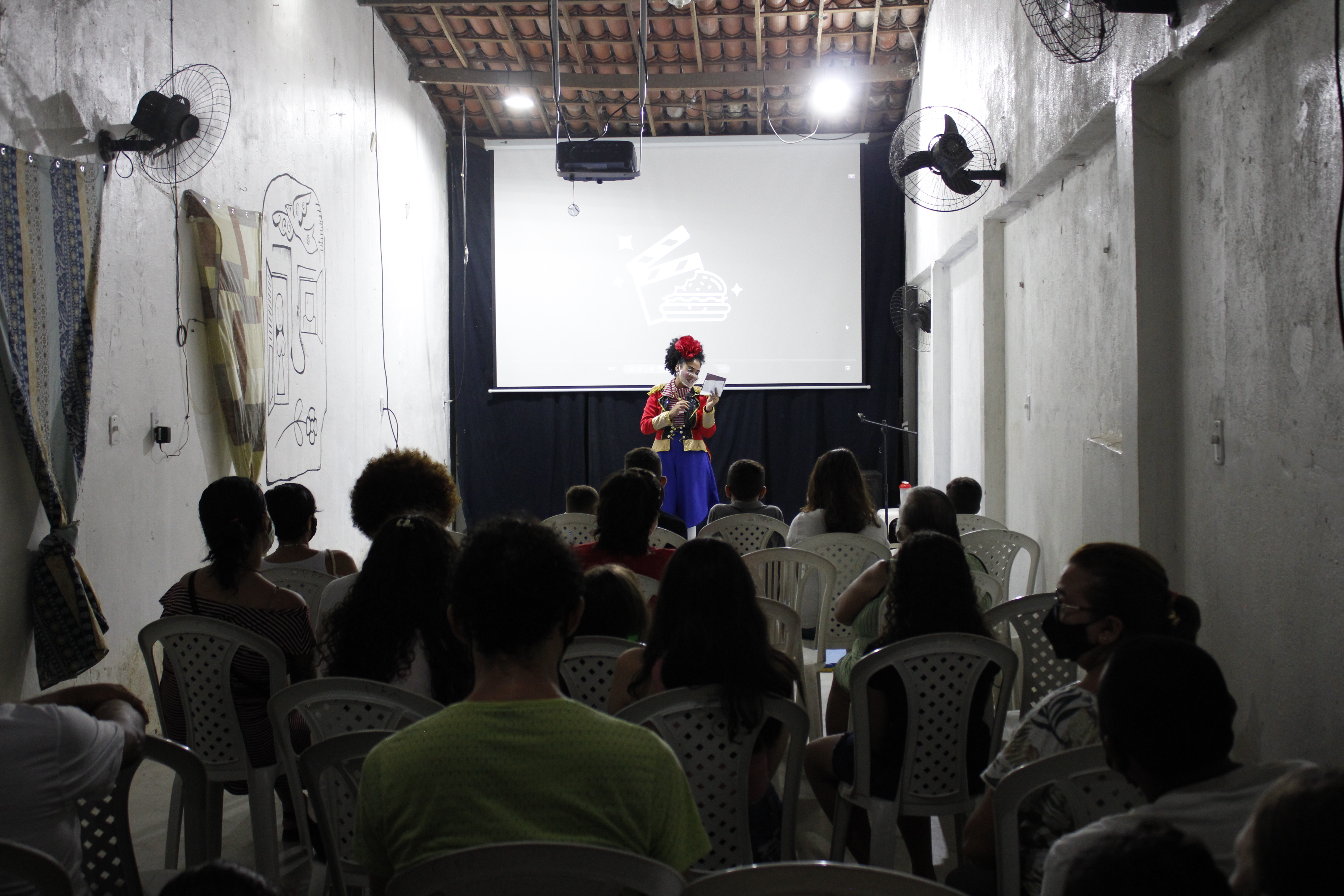 Ao fim das exibições, temos uma roda de conversa e/ou apresentação de artistas locais ou de fora do município cujas performances e assuntos casem com os conteúdos da exibição da noite, pois entendemos que a troca com o público e o diálogo entre as linguagens é um fator enriquecedor para os envolvidos na ação. Com a mente alimentada, temos a nossa “broca” de lei, podendo ser pipoca ou lanches variados distribuídos ao público gratuitamente.