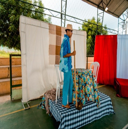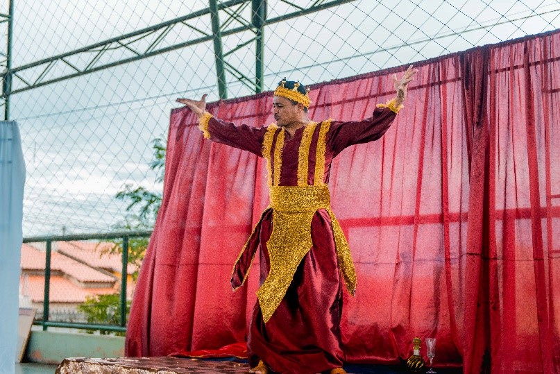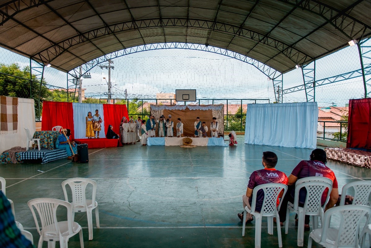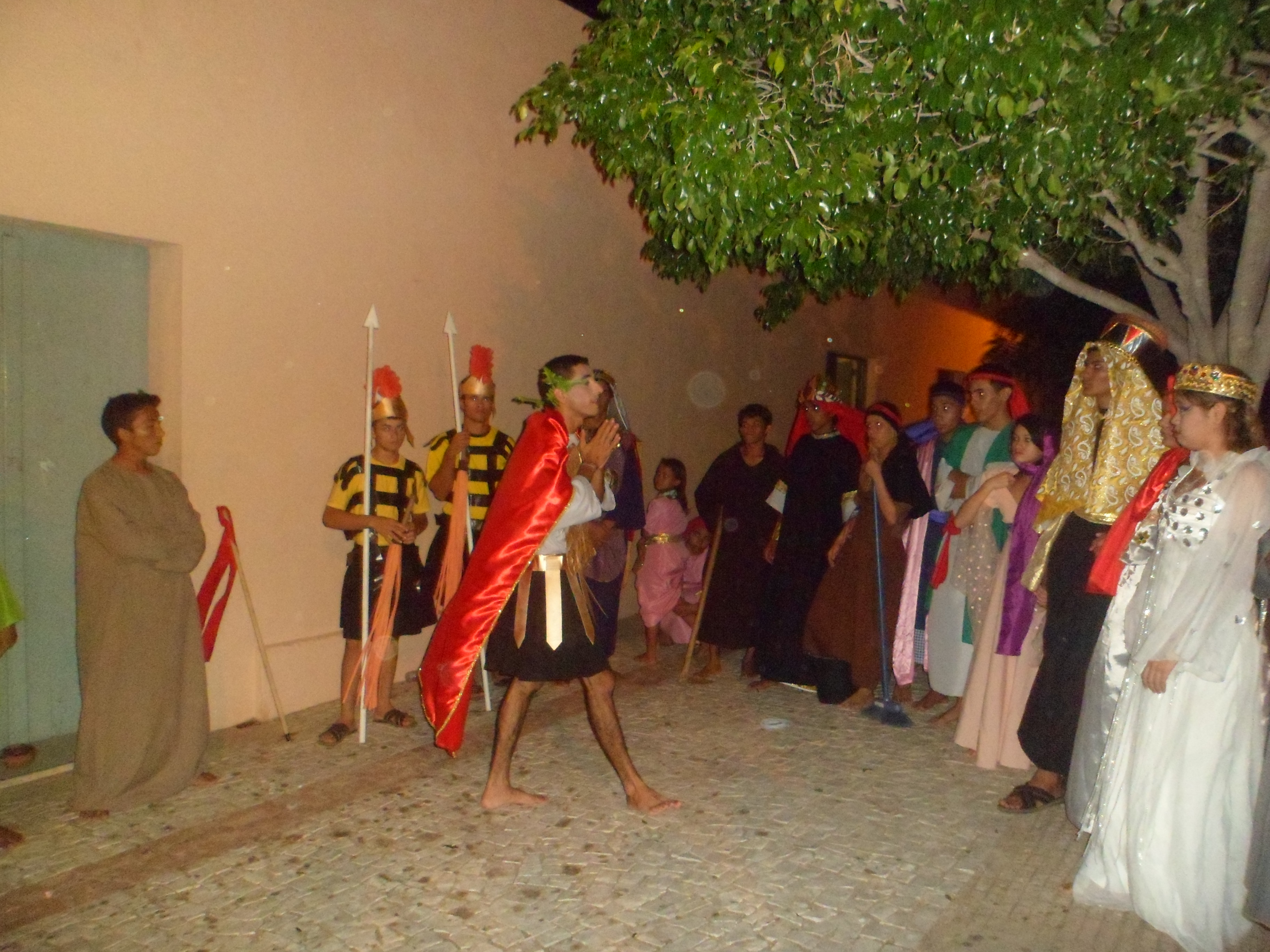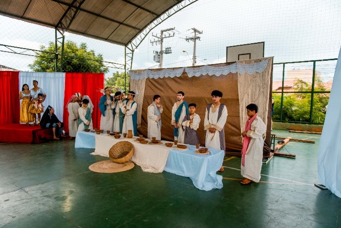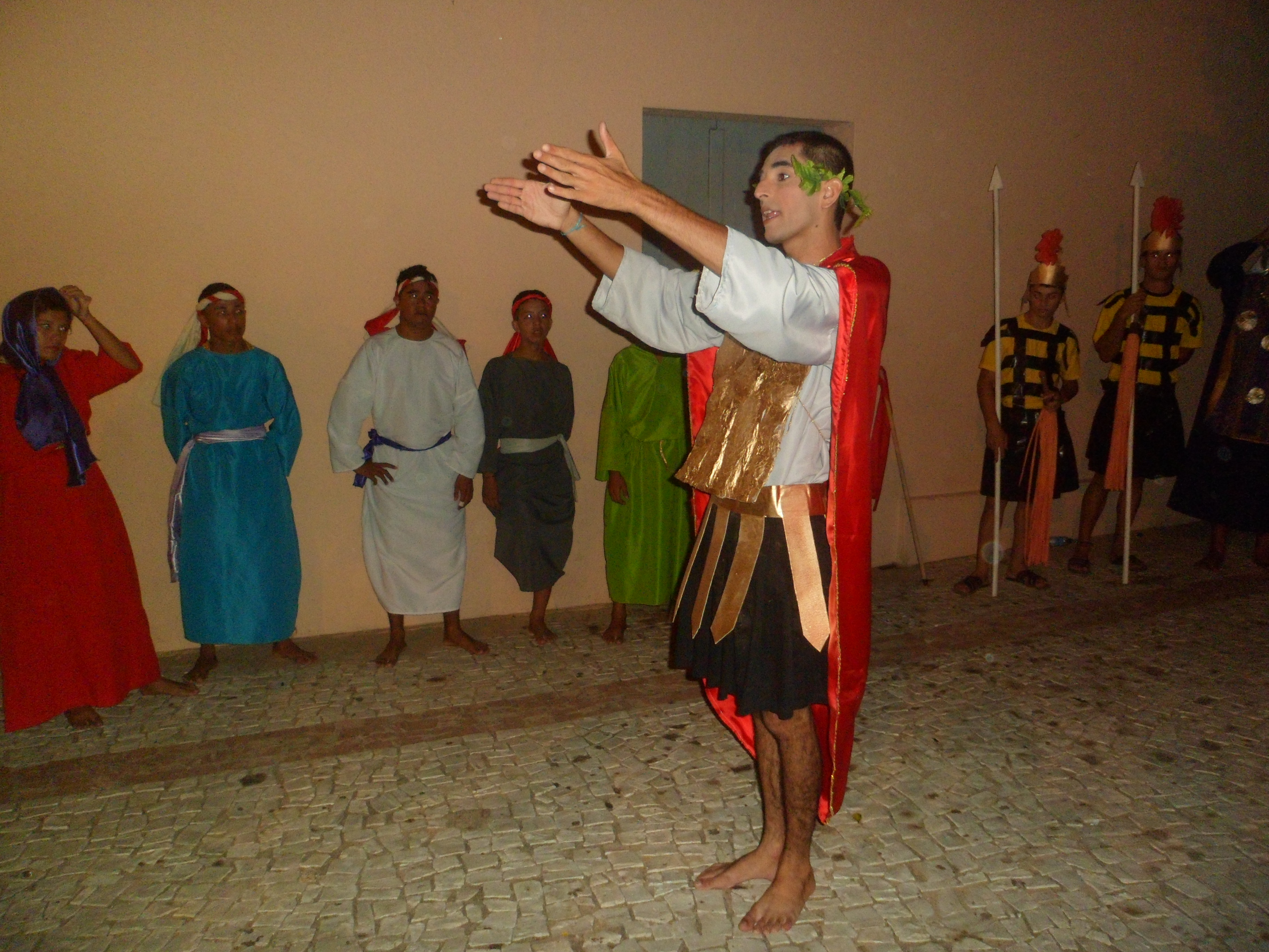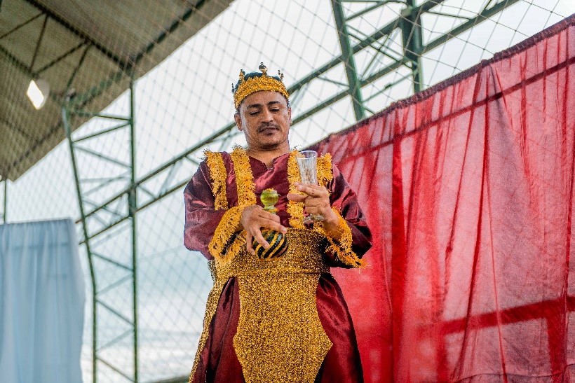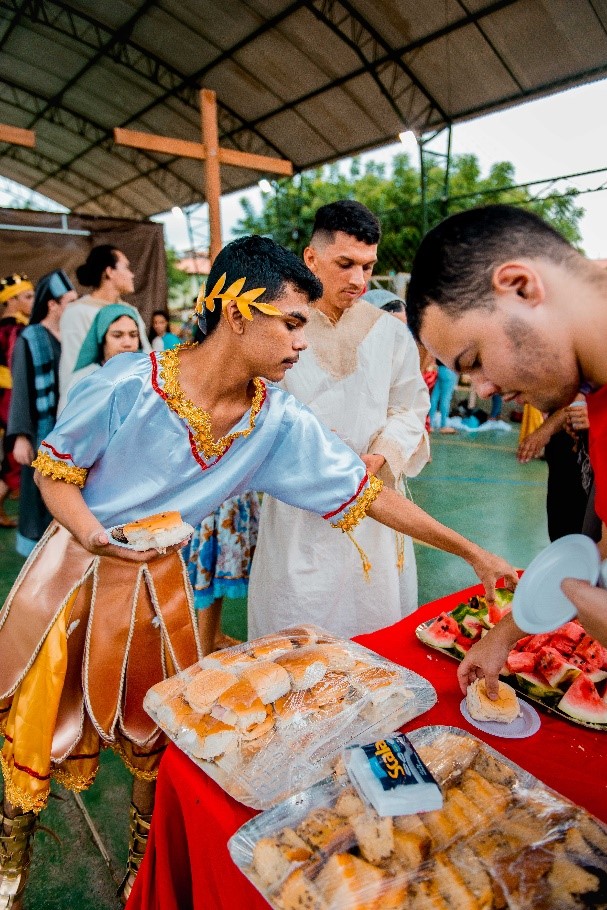 Esse diálogo de tradições resulta no espetáculo criativo na construção de suas cenas, personagens, trilha sonora, figurinos e adereços. Trabalho resultante da investigação intensiva de um grupo de artistas reunido pra promover junto a comunidade do Bairro Santa Luzia, em Canindé, mais um espaço para celebração da arte e da fé no período pascal.