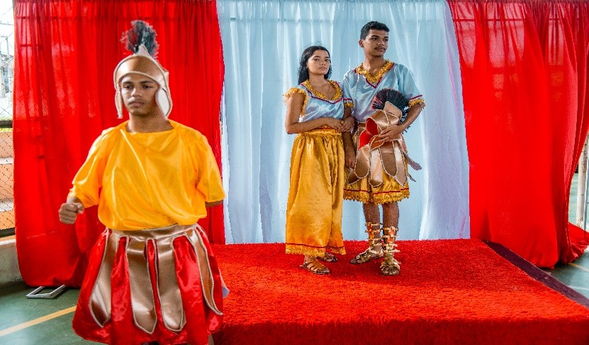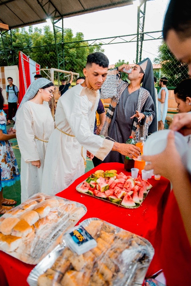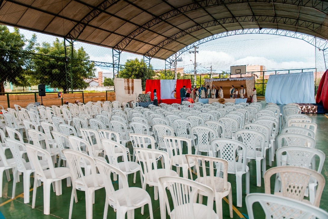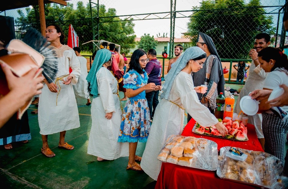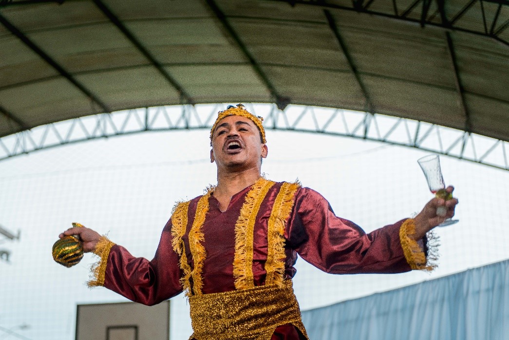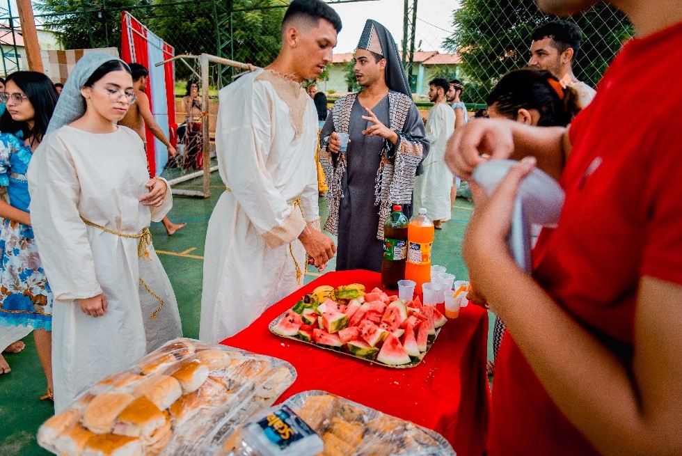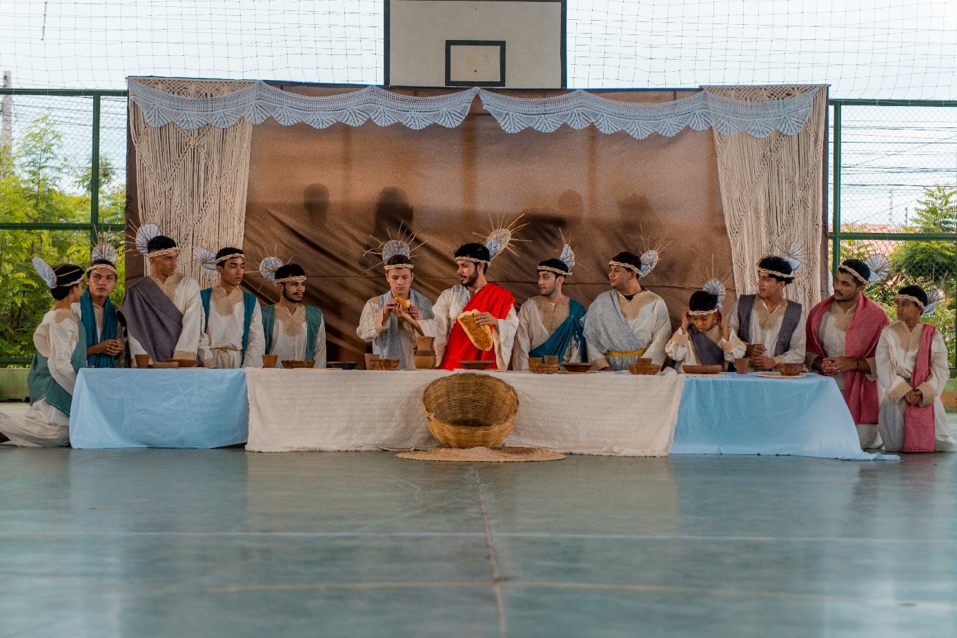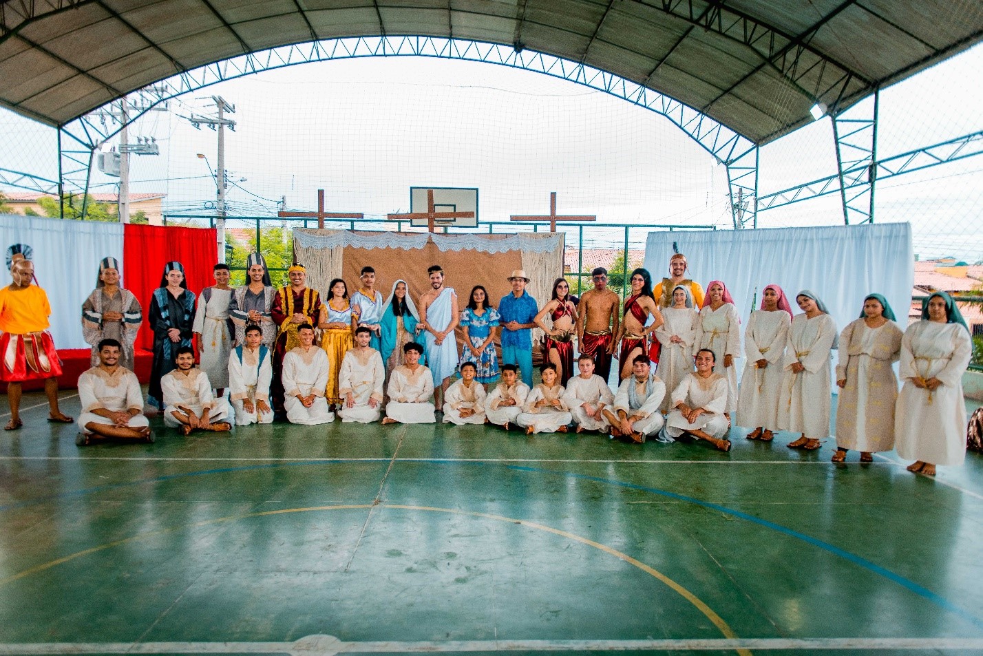 Esse diálogo de tradições resulta no espetáculo criativo na construção de suas cenas, personagens, trilha sonora, figurinos e adereços. Trabalho resultante da investigação intensiva de um grupo de artistas reunido pra promover junto a comunidade do Bairro Santa Luzia, em Canindé, mais um espaço para celebração da arte e da fé no período pascal.