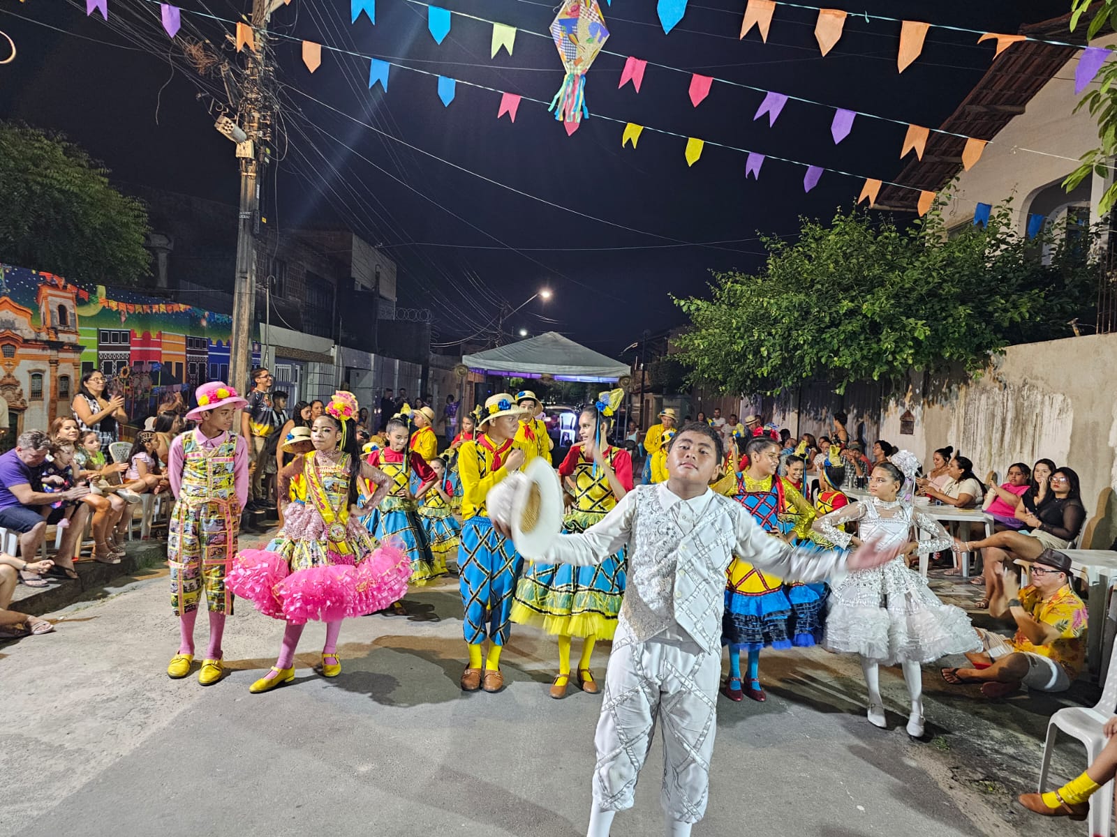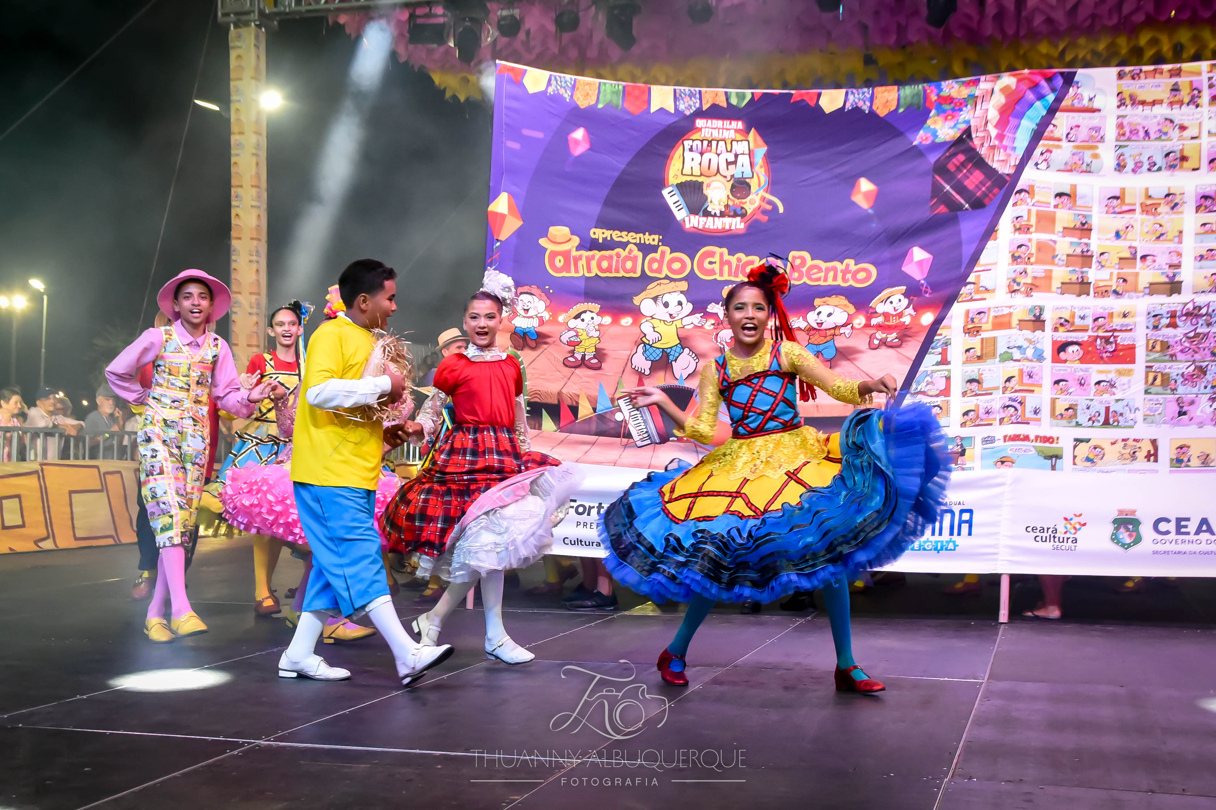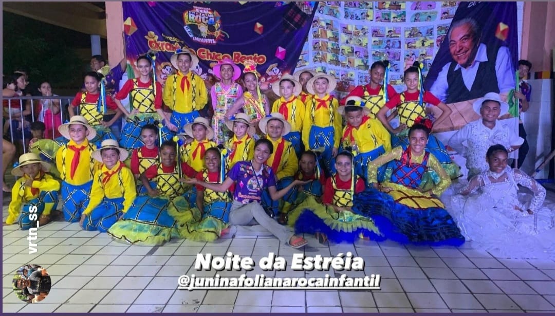 Estreamos no dia 30 de maio de 2024 sendo a primeira quadrilha infantil do Brasil a iniciar temporada junina, realizamos no total de 41 apresentações finalizando nosso projeto no dia 31 de julho participando do FESTIVAL CEARENSE.