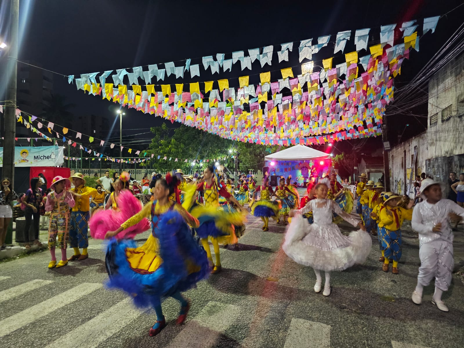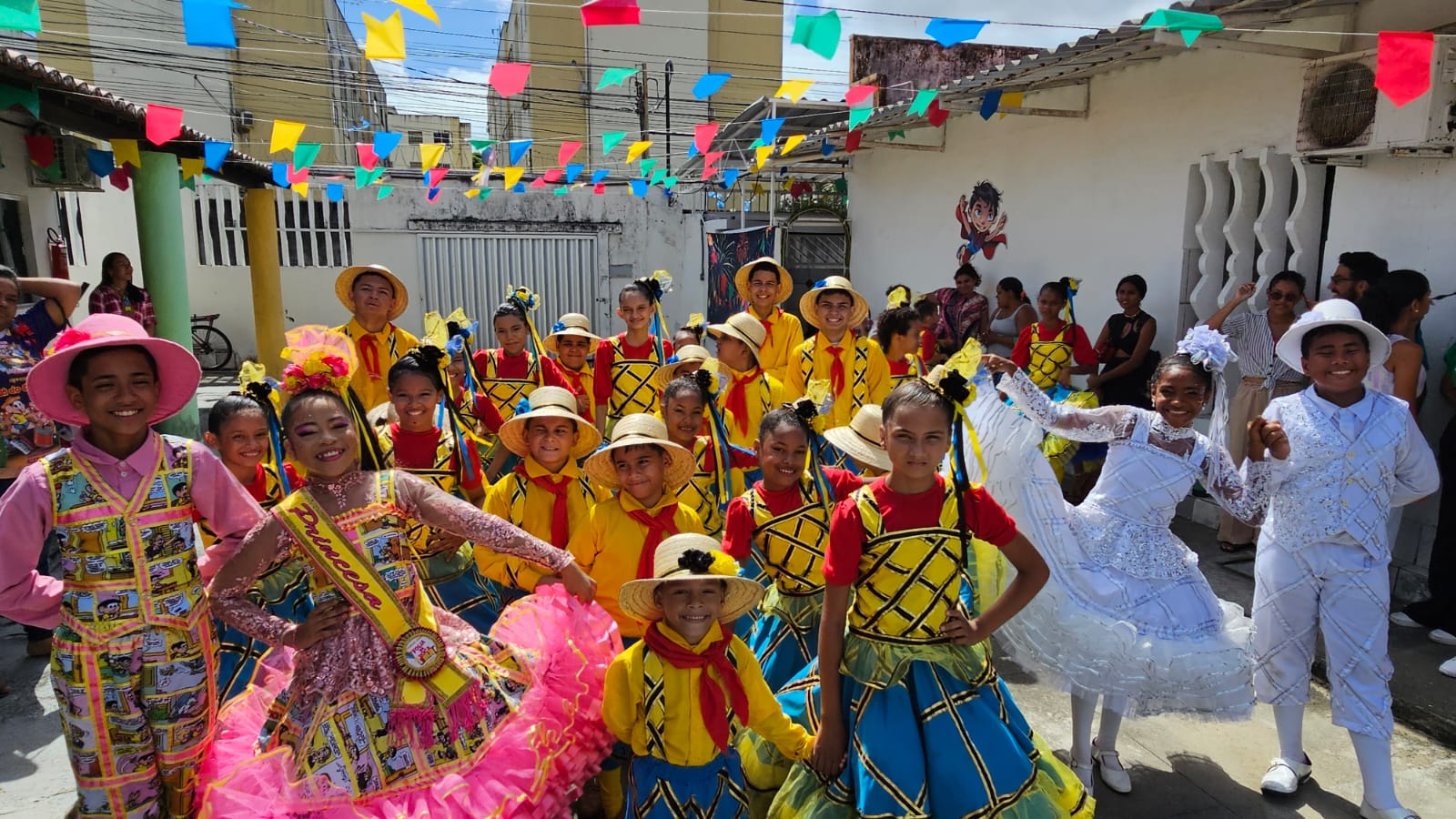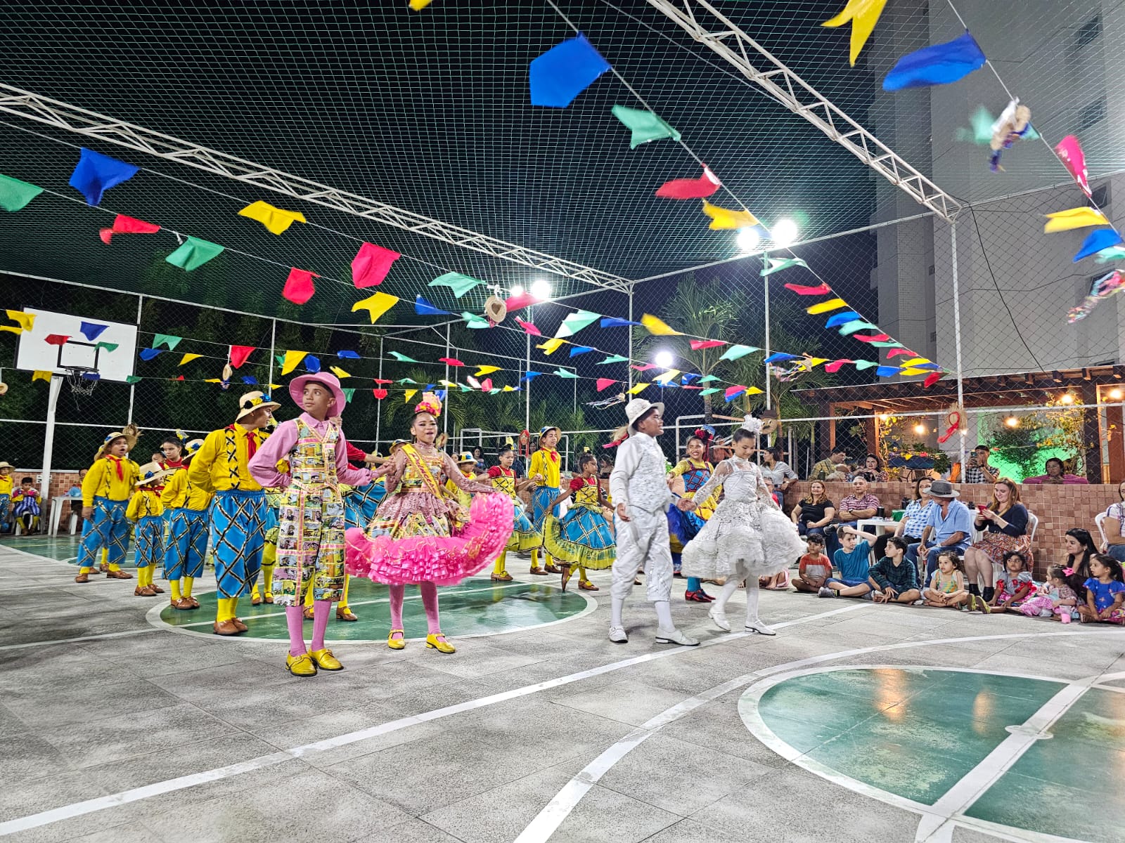 Estreamos no dia 30 de maio de 2024 sendo a primeira quadrilha infantil do Brasil a iniciar temporada junina, realizamos no total de 41 apresentações finalizando nosso projeto no dia 31 de julho participando do FESTIVAL CEARENSE.