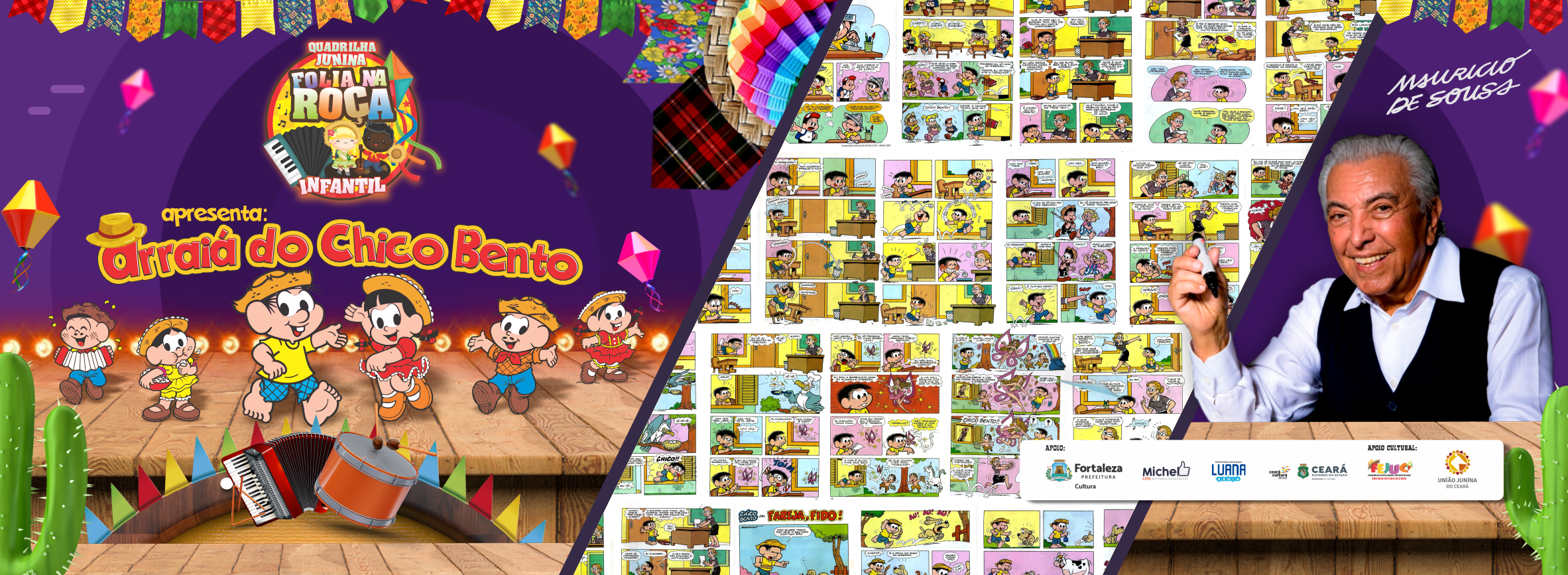 No ano de 2024 Apresentamos o tema Arraiá Do Chico Bento, uma homenagem ao escritor Maurício De Sousa e trazendo como referência os gibis do escritor de forma junina incentivando a importância da leitura nos dias atuais