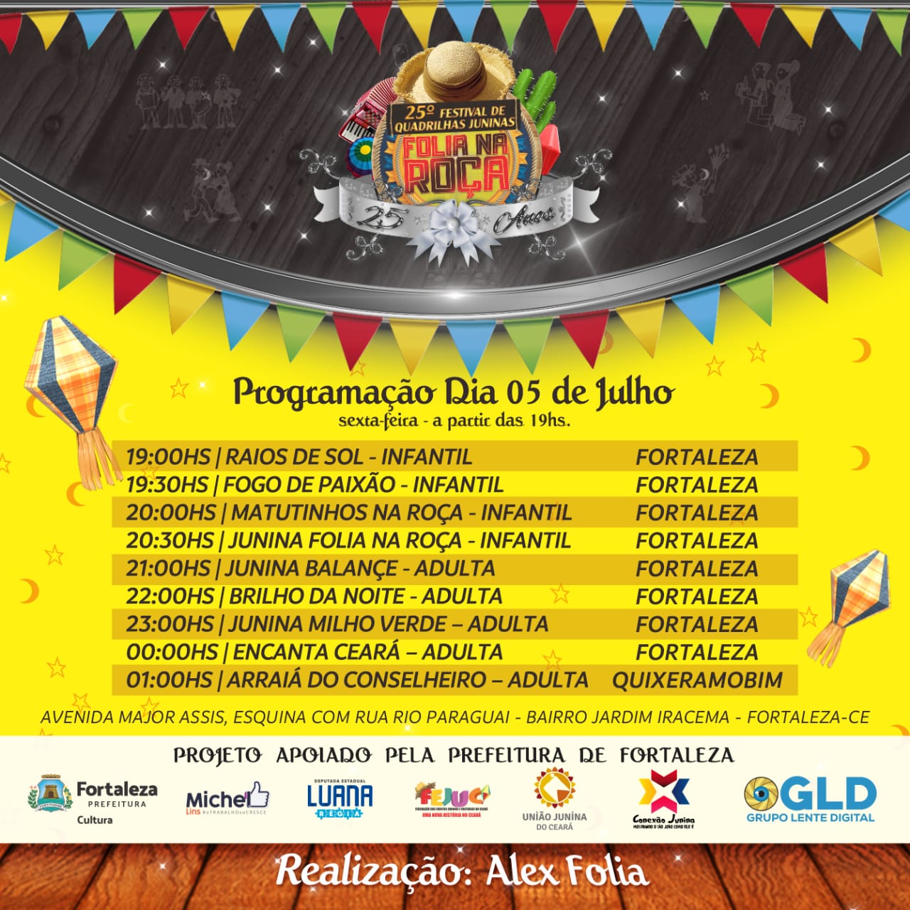 Em 2025 trazemos como tema O TREM JUNINO DA FOLIA um trem carregado de muita alegria e diversão que vai fazer uma viagem em quatros estações através da dança com os ritmos (Baião, Arrasta - Pé, Xote e Xaxado) em cada parada nas estações será uma emoção. Esse será o Trem da Folia fazendo uma viagem com a criançada no São João do Ceará.
