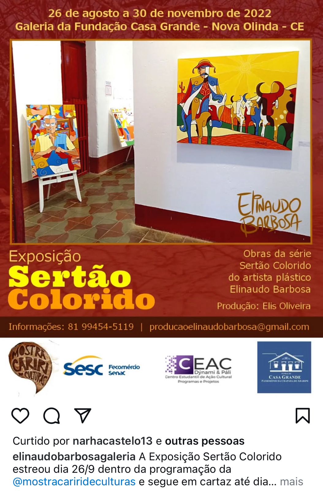 Exposição Sertão Colorido em parceria com o Instituto Dragão do Mar de Arte e Cultura.