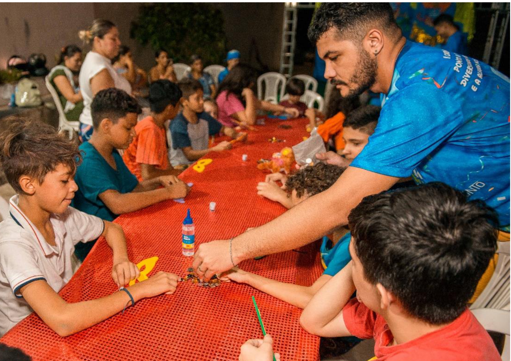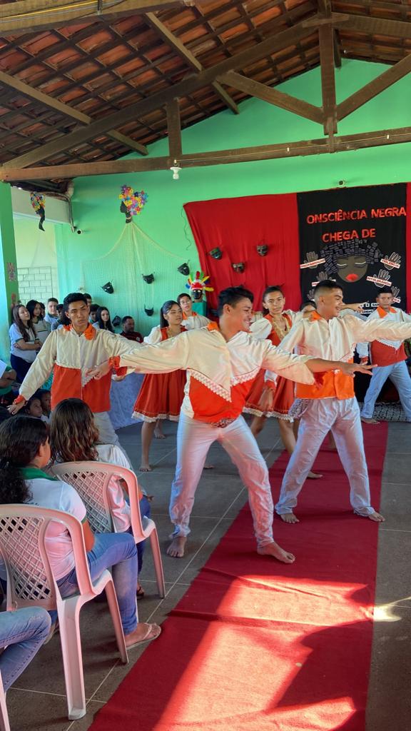 Entrei no Grupo como batuqueiro e produção em 2019. Participei da produção do espetáculo “CRIANÇA PINTA, BORDA E DANÇA” que retrata as danças populares do Brasil.