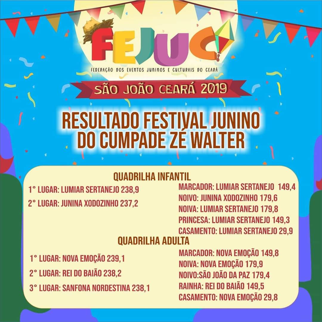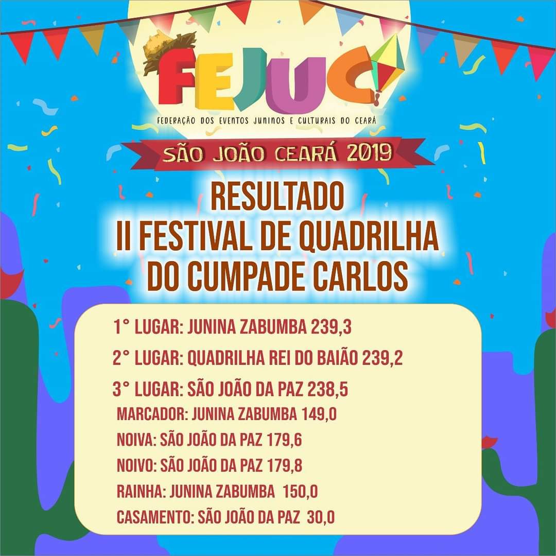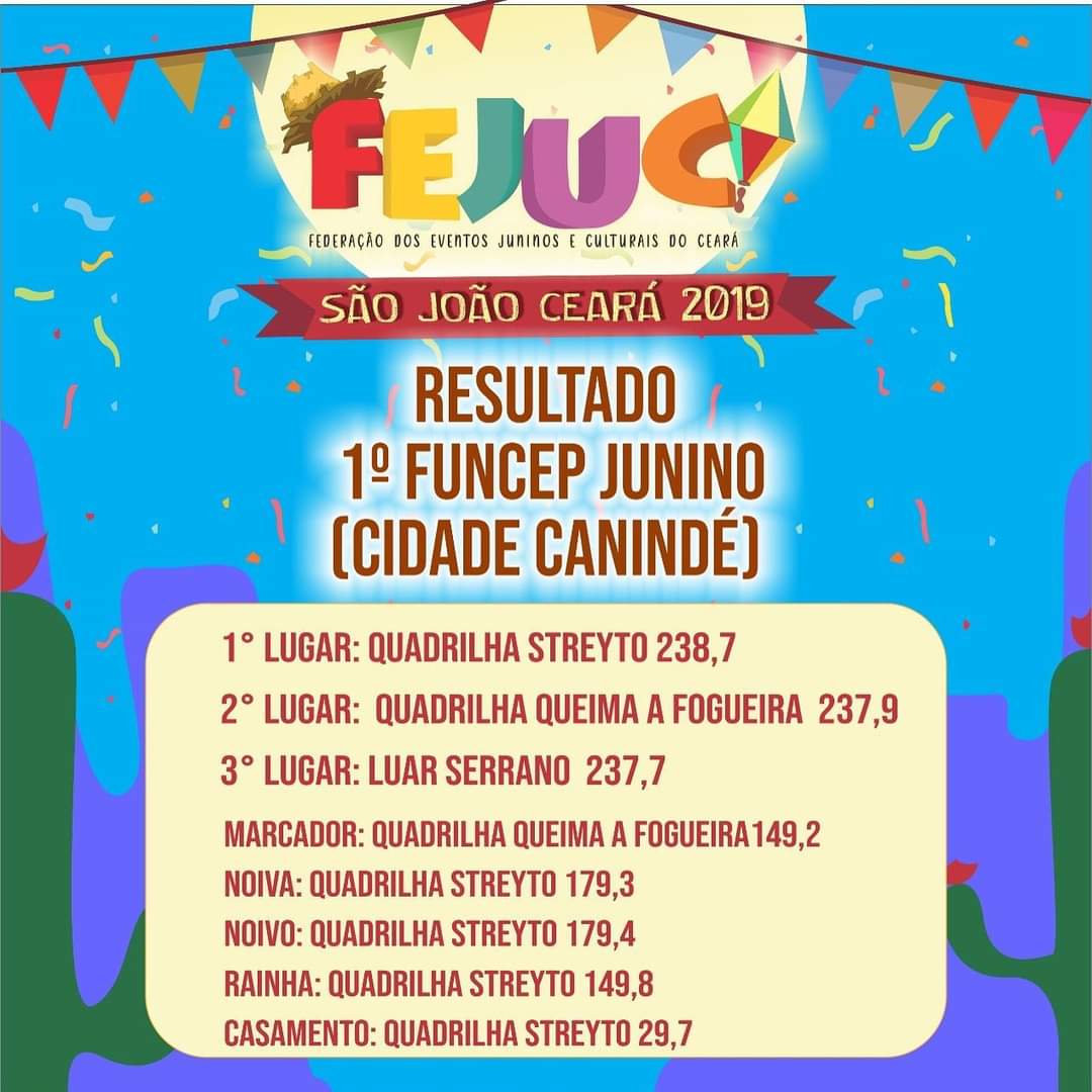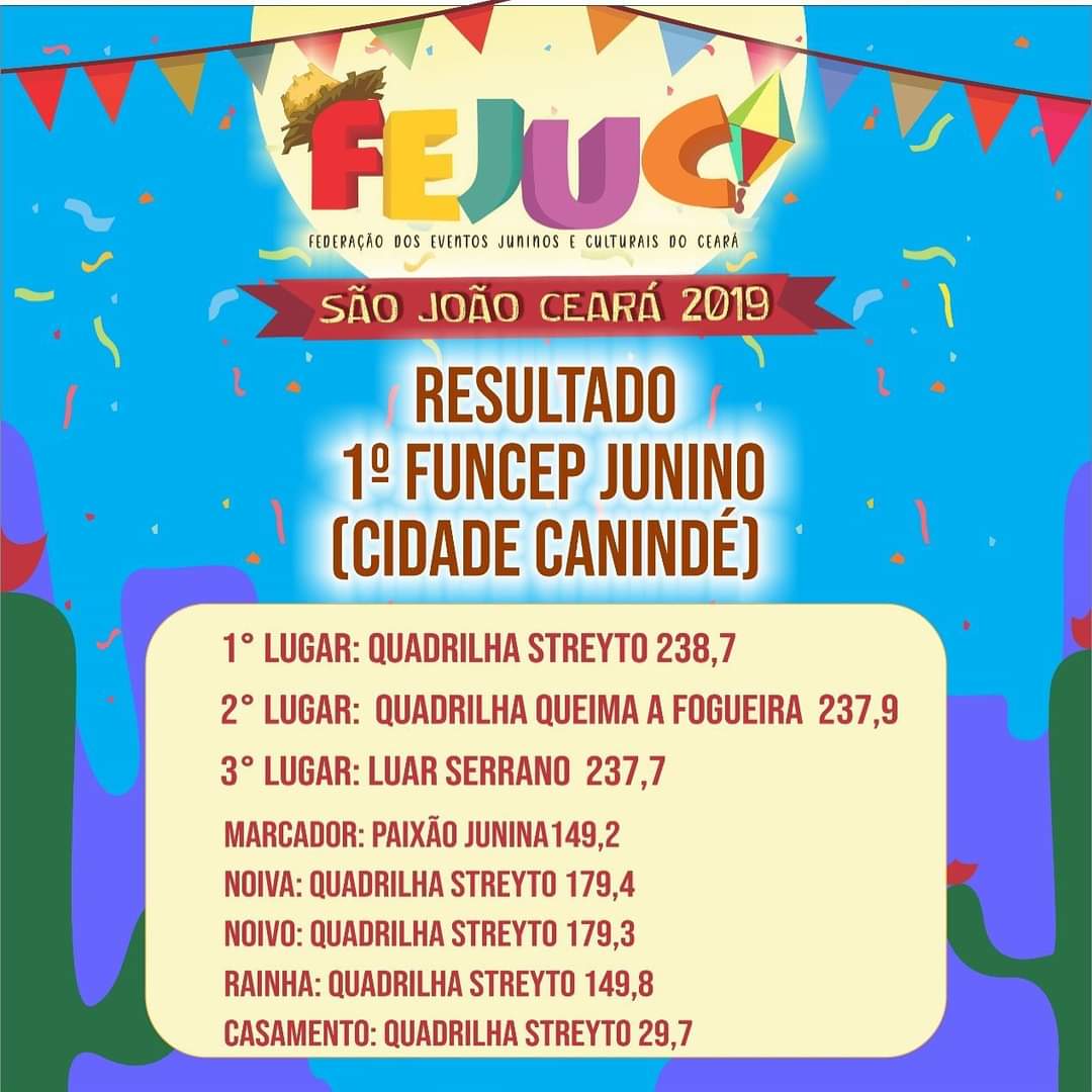Quem Somos:A Federação dos Eventos Juninos e Culturais do Ceará - FEJUC, é uma instituição de direito privado, sem fins lucrativos, que apoia e representa promotores e organizadores de eventos juninos e culturais, quadrilhas juninas e jurados dos festejos juninos e de outras expressões artísticas, incentivando e valorizando as manifestações tradicionais populares.