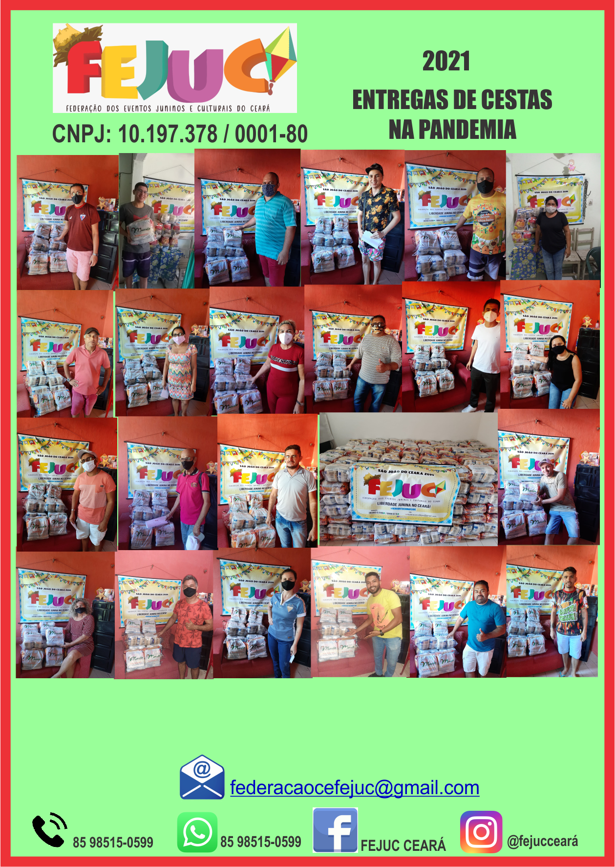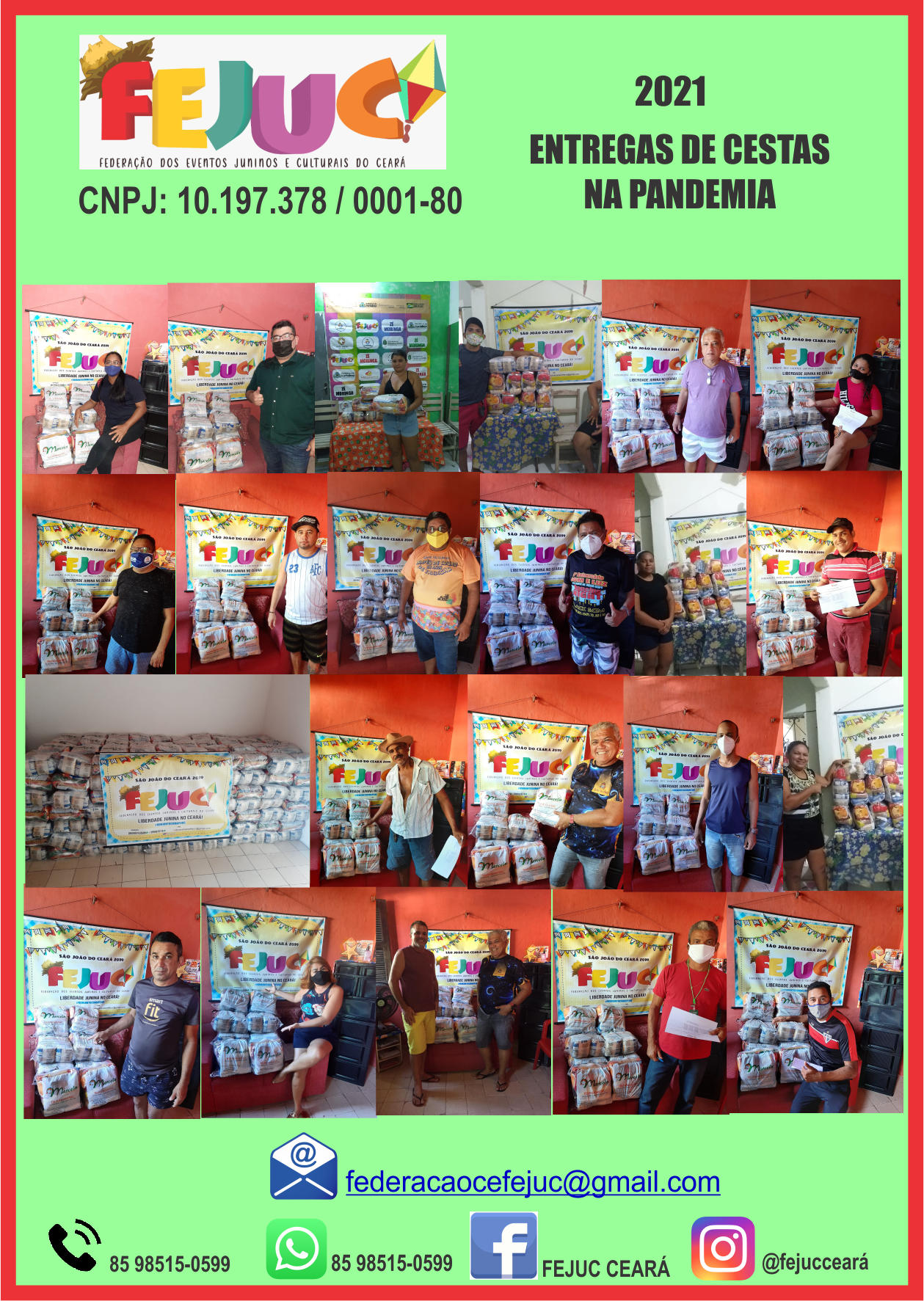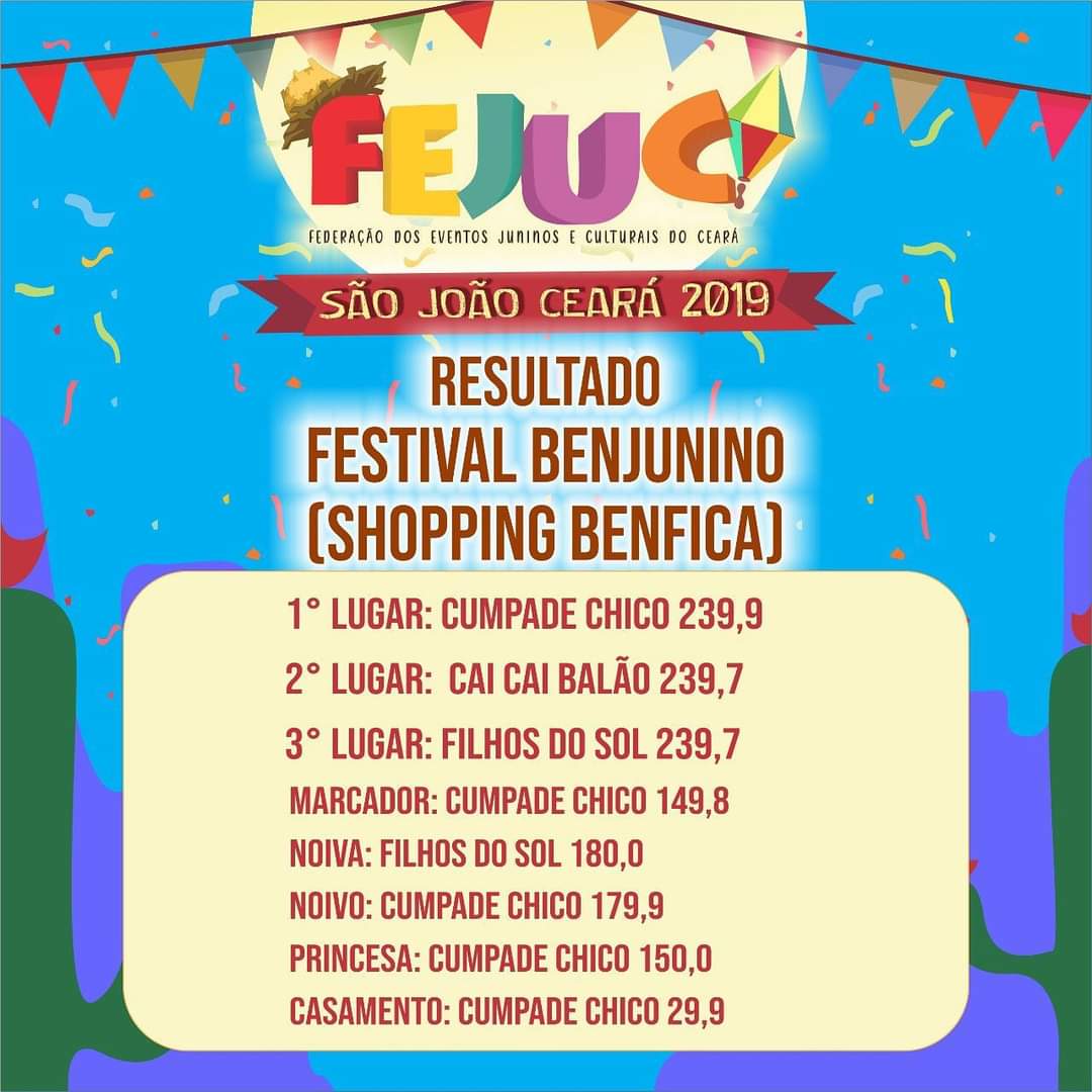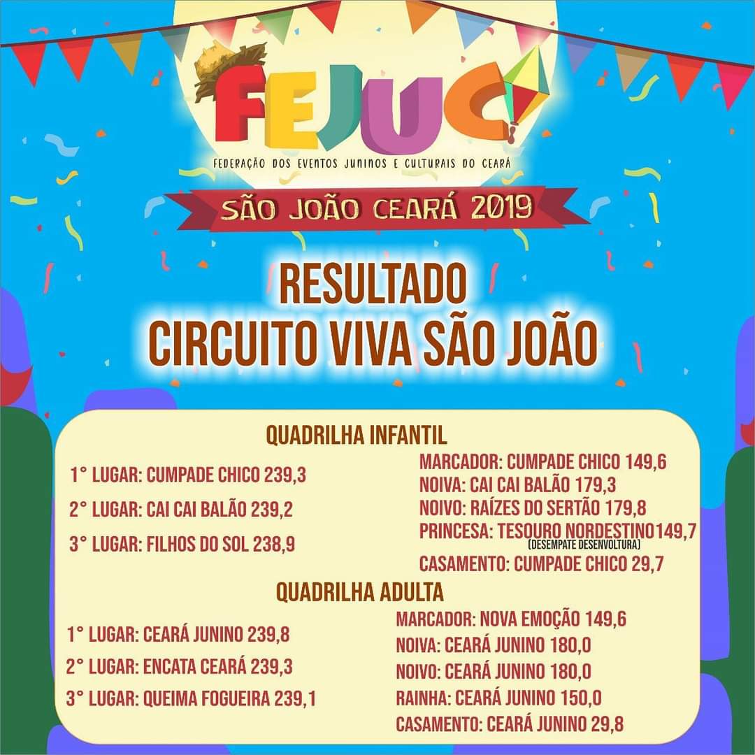 Quem Somos:A Federação dos Eventos Juninos e Culturais do Ceará - FEJUC, é uma instituição de direito privado, sem fins lucrativos, que apoia e representa promotores e organizadores de eventos juninos e culturais, quadrilhas juninas e jurados dos festejos juninos e de outras expressões artísticas, incentivando e valorizando as manifestações tradicionais populares.