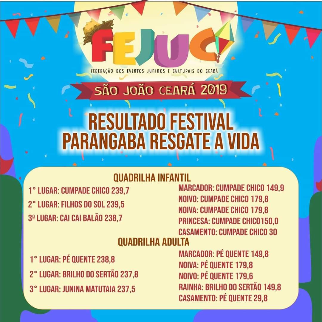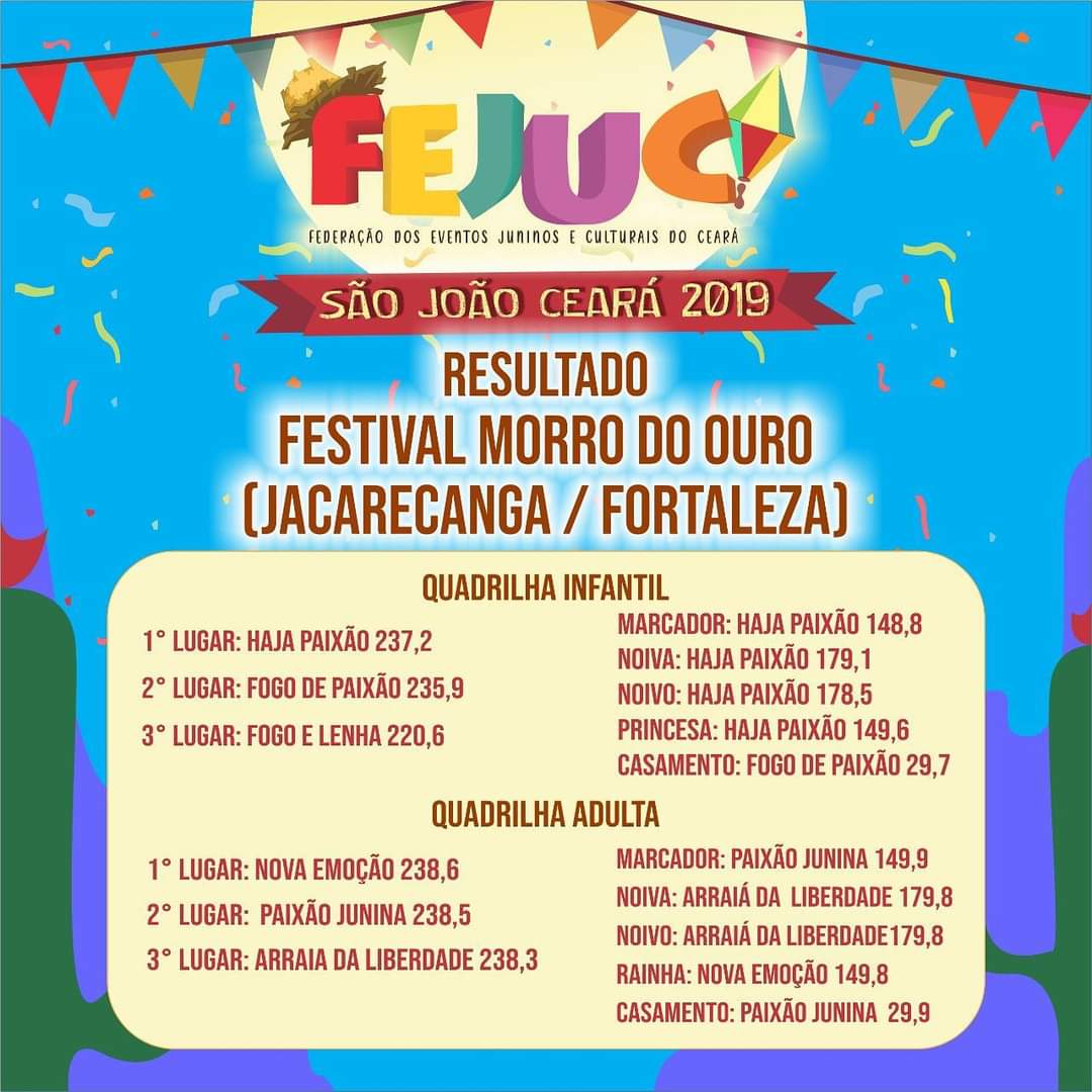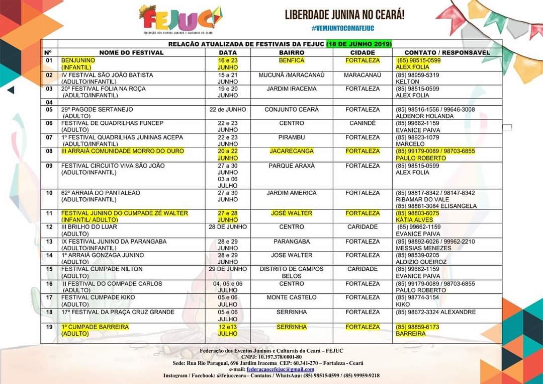 • Festivais Estaduais de Quadrilhas Juninas do Ceará;