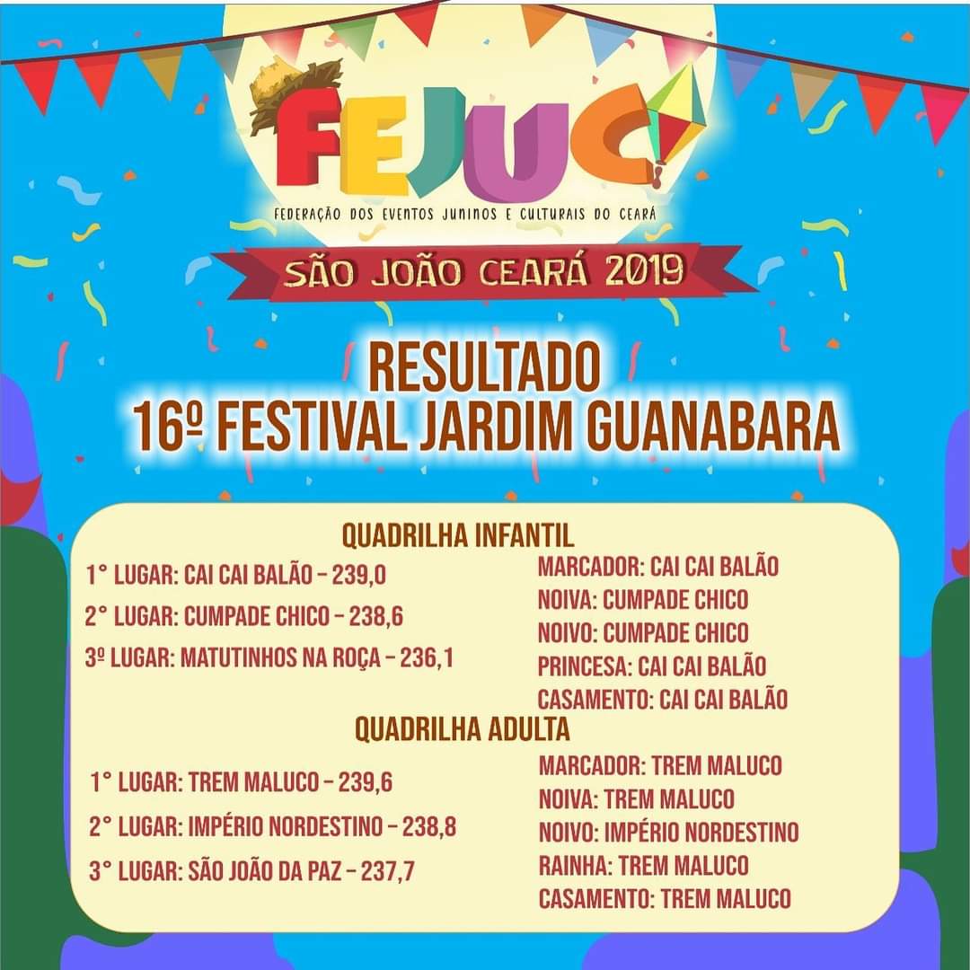 FESTIVAL FILIADO À FEJUC LIVE 17º FESTIVAL DE QUADRILHAS JUNINAS DO JARDIM GUANABARA