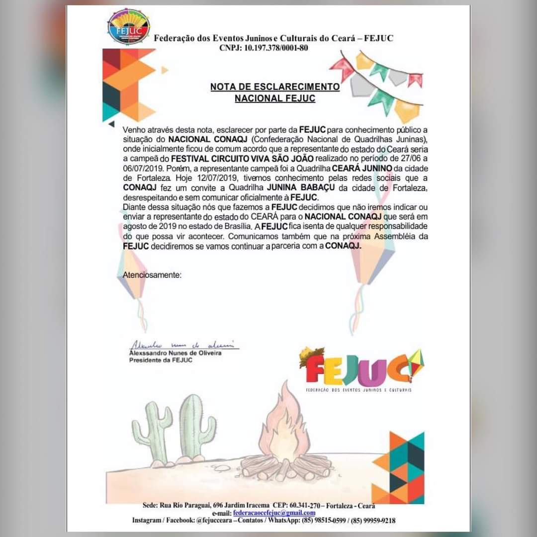 FEDERAÇÃO DOS EVENTOS JUNINOS E CULTURAIS DO CEARÁ - FEJUC