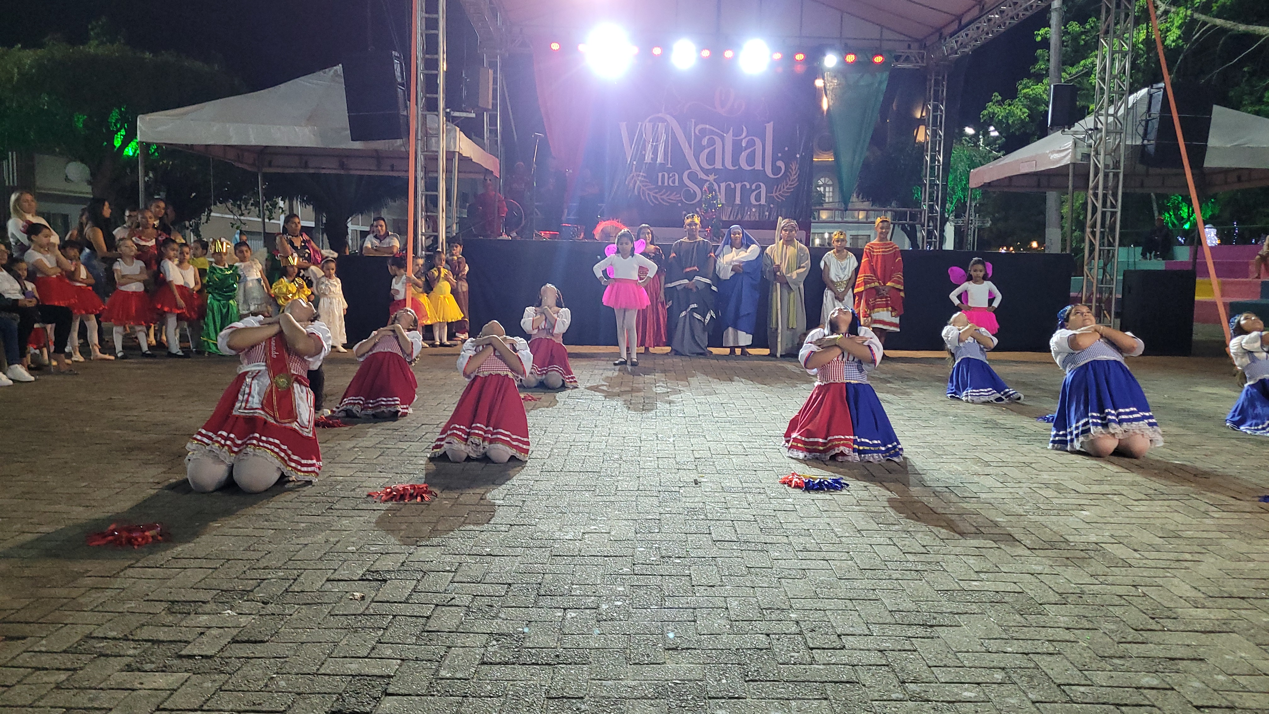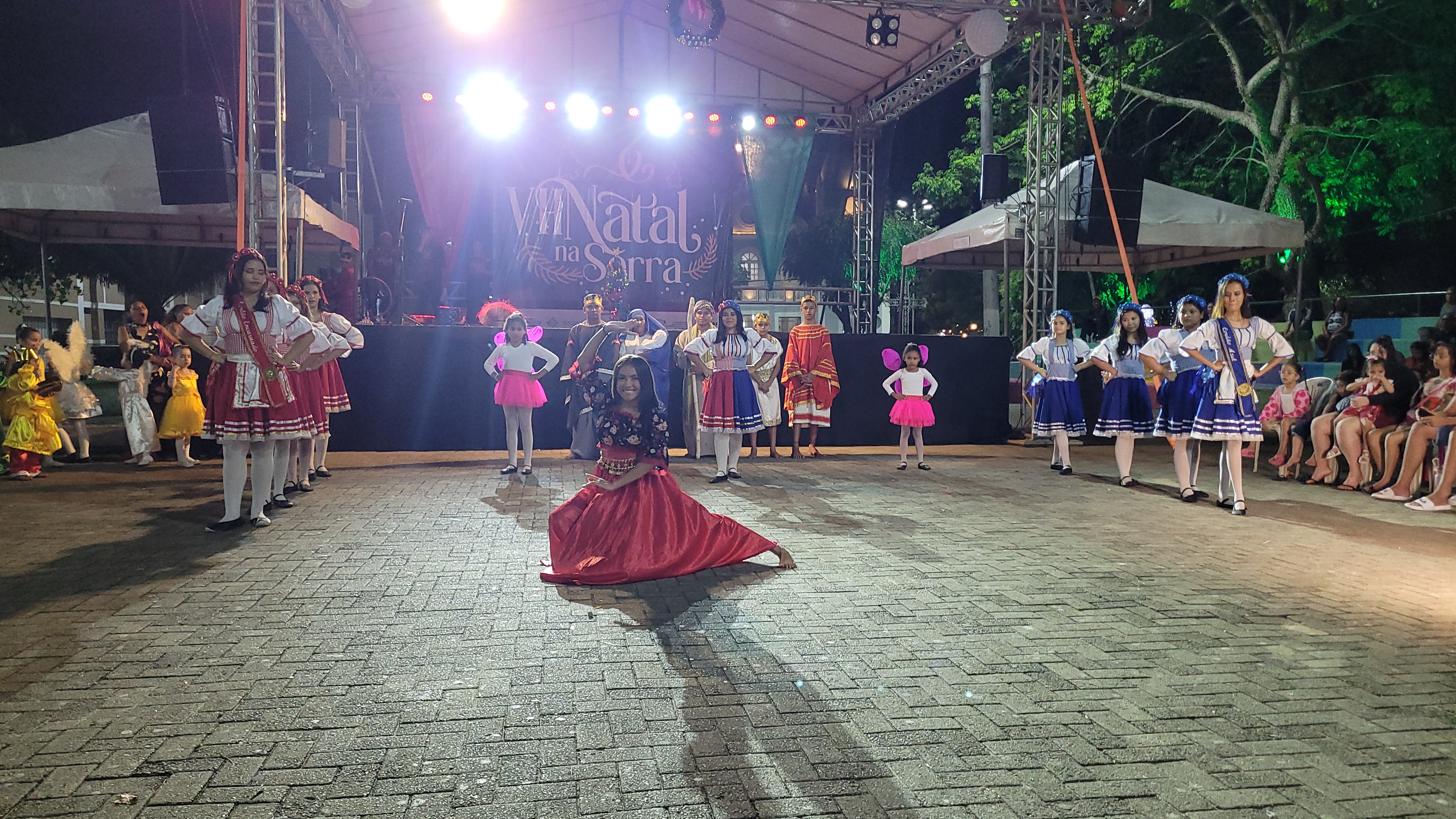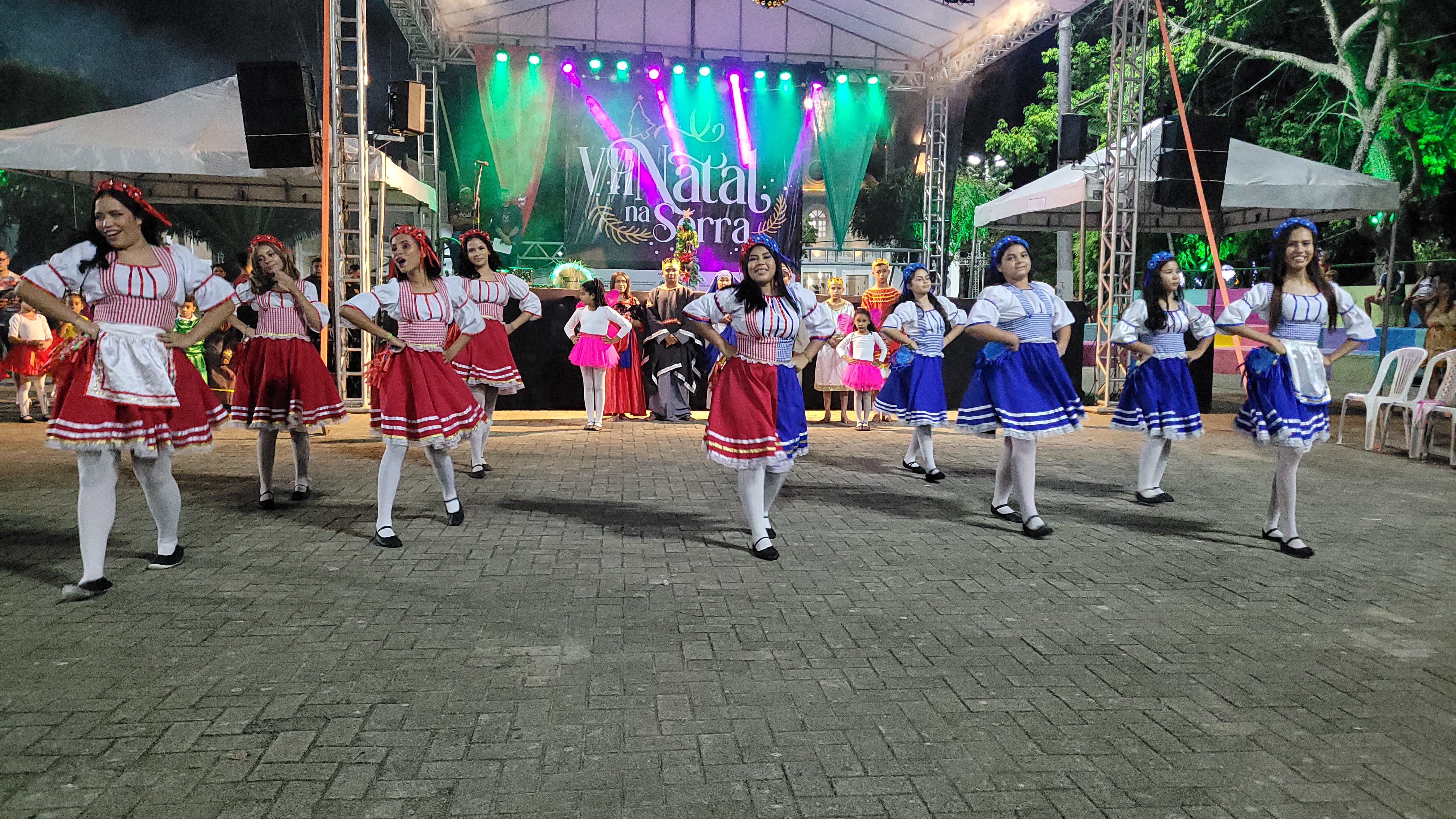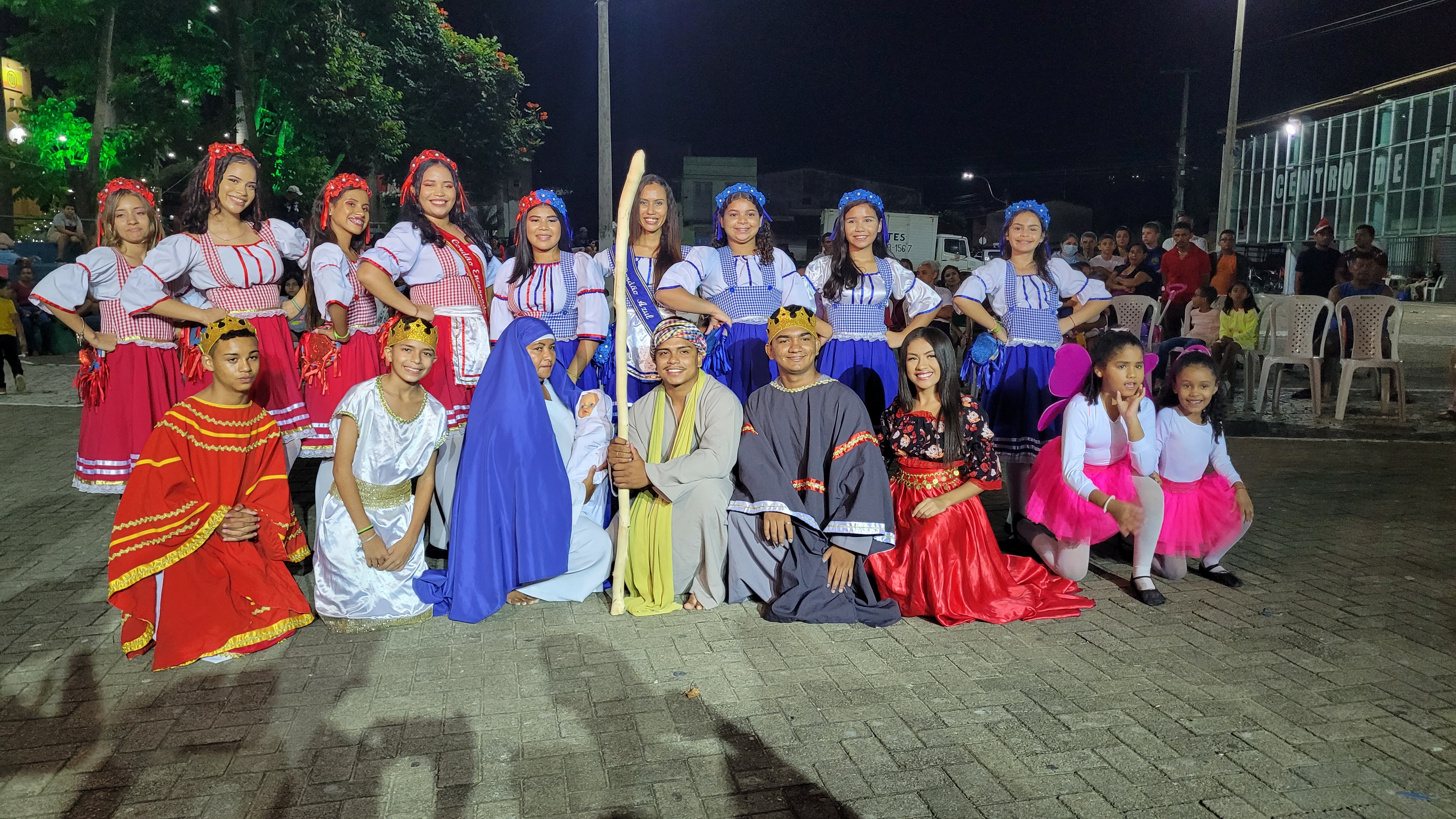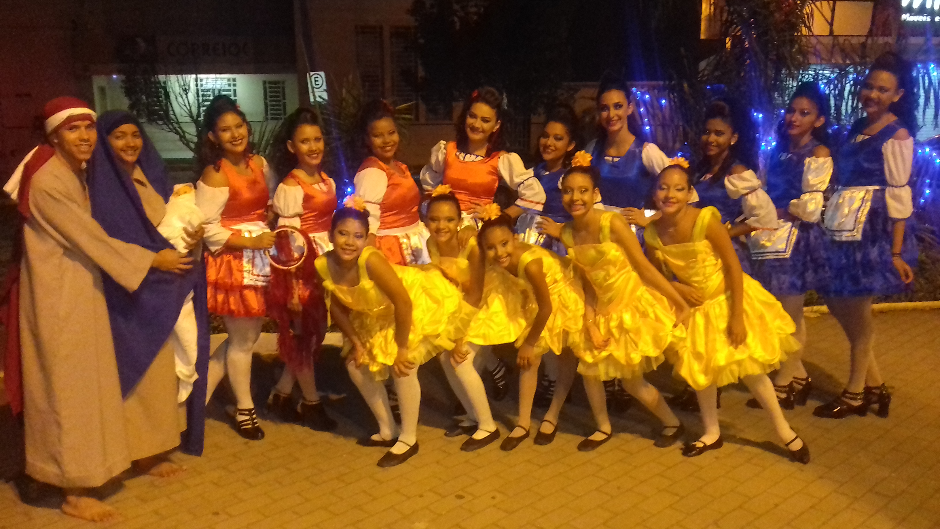 Aproximadamente 25 pessoas formam o nosso pastoril, entre dançarinas, atores e produção.