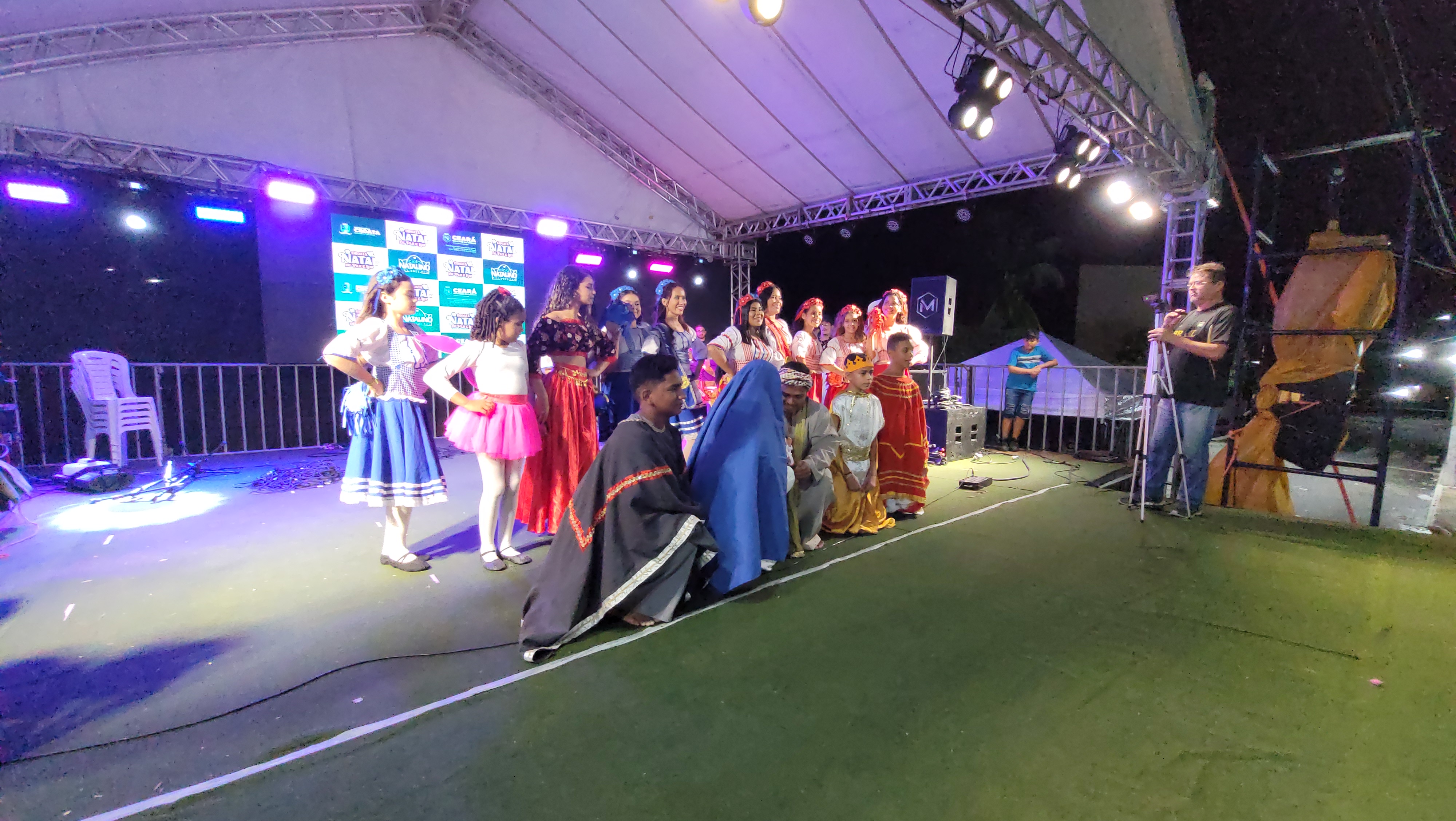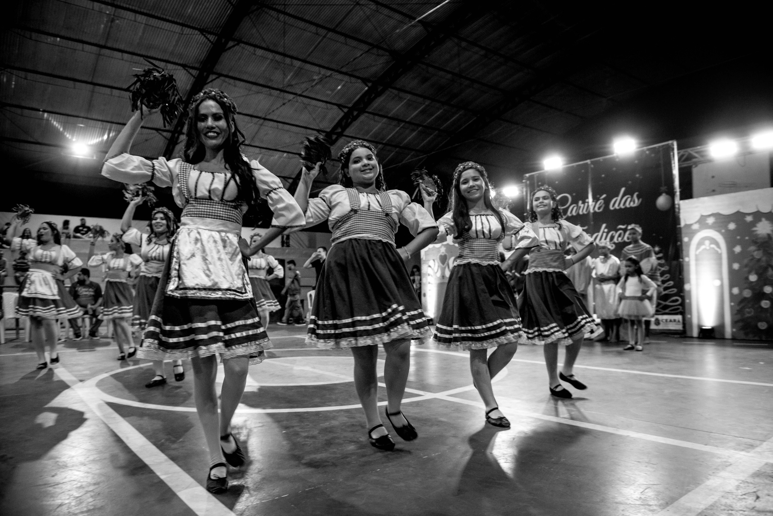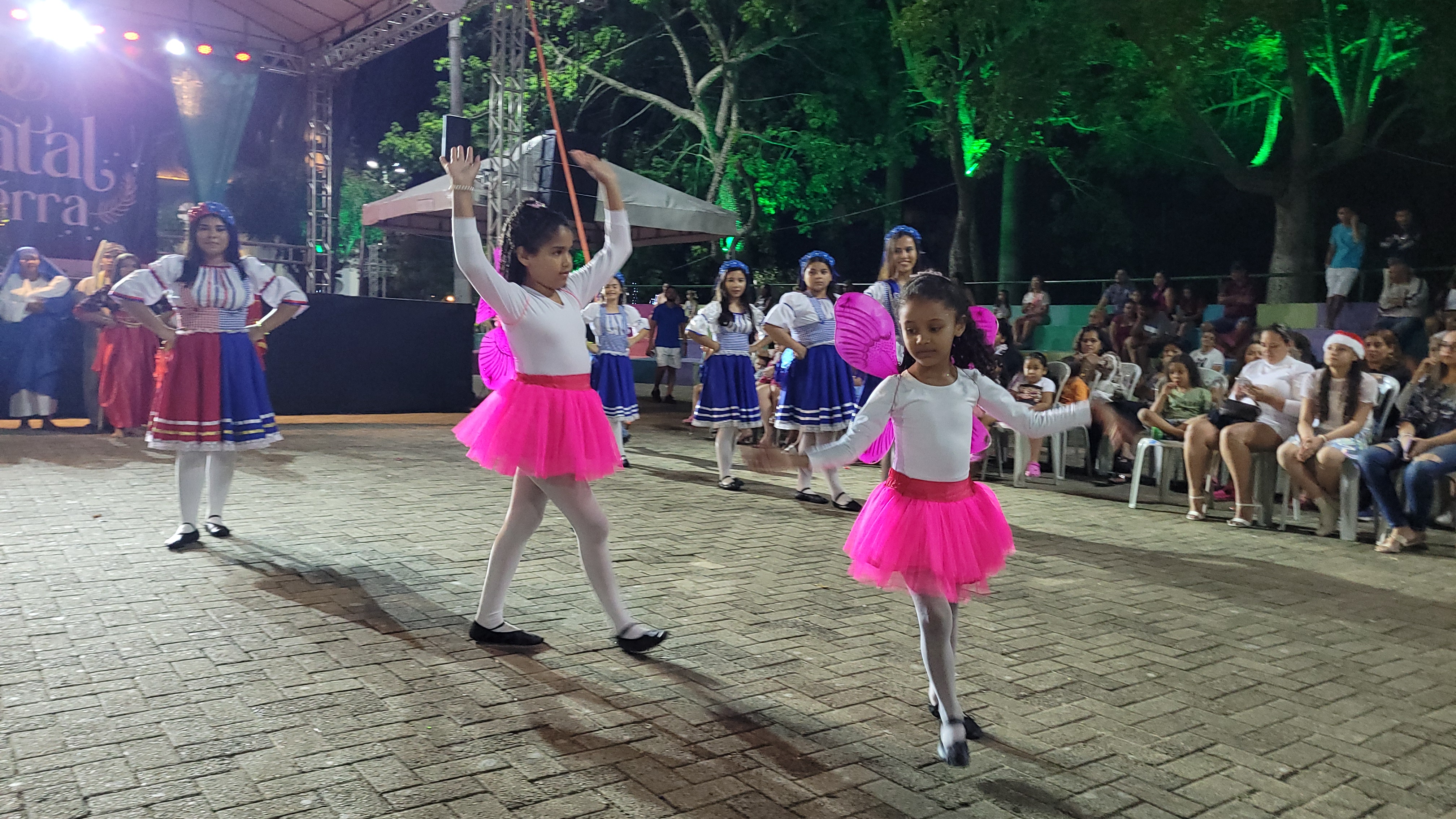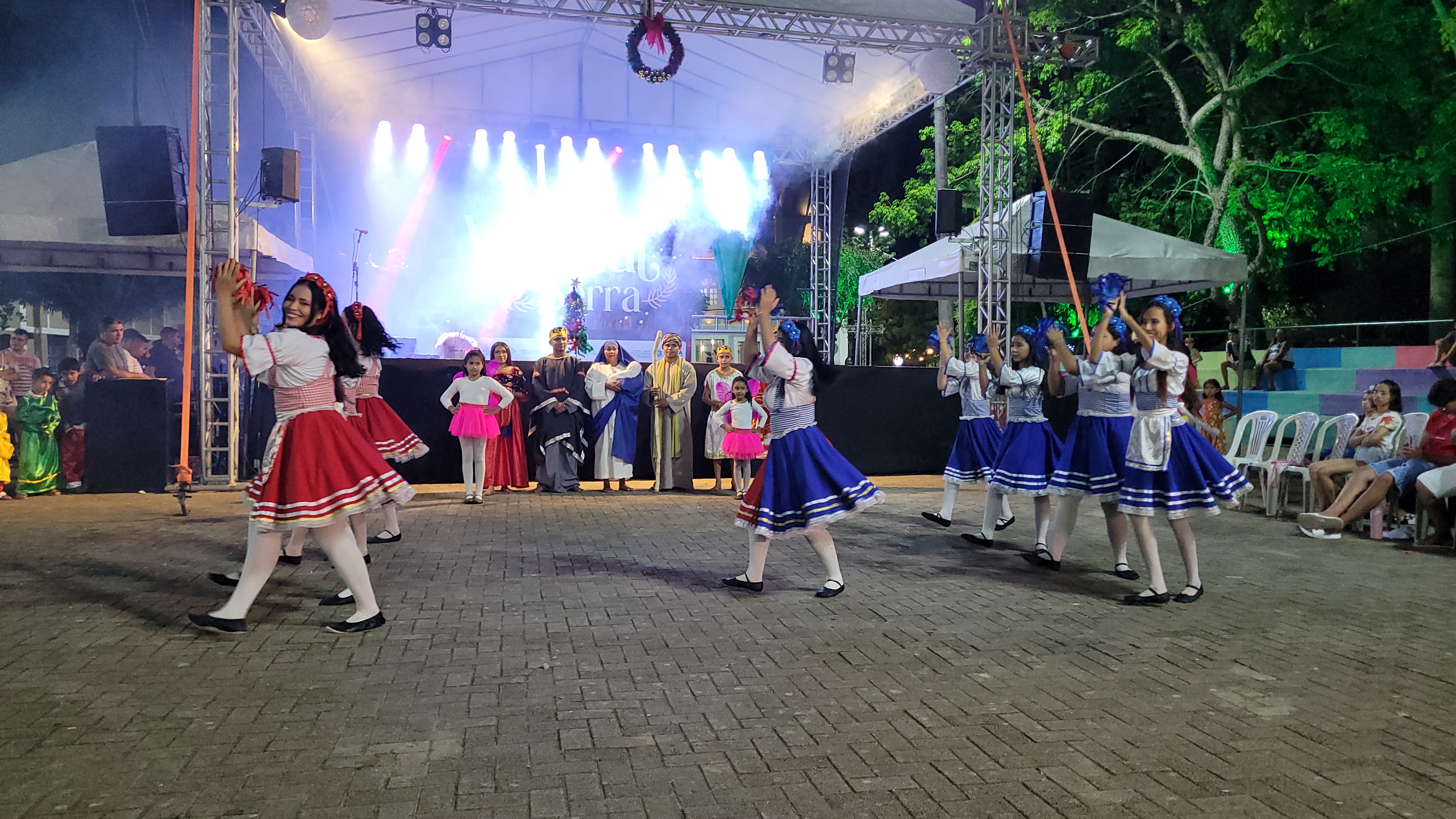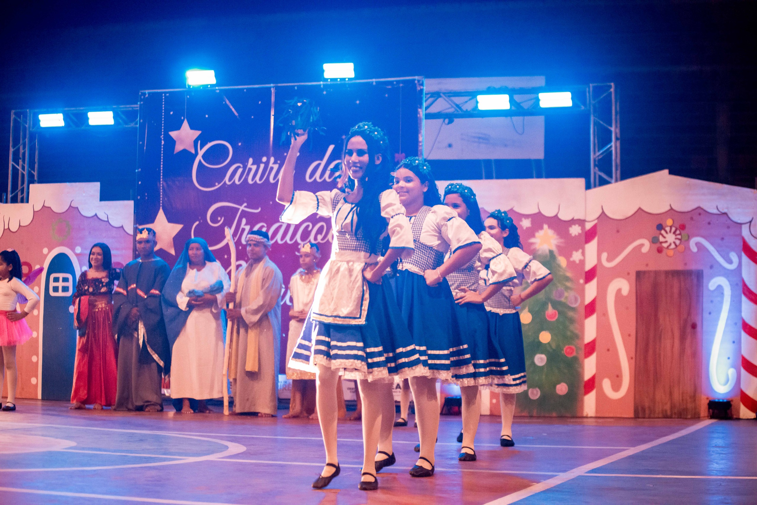 Aproximadamente 25 pessoas formam o nosso pastoril, entre dançarinas, atores e produção.