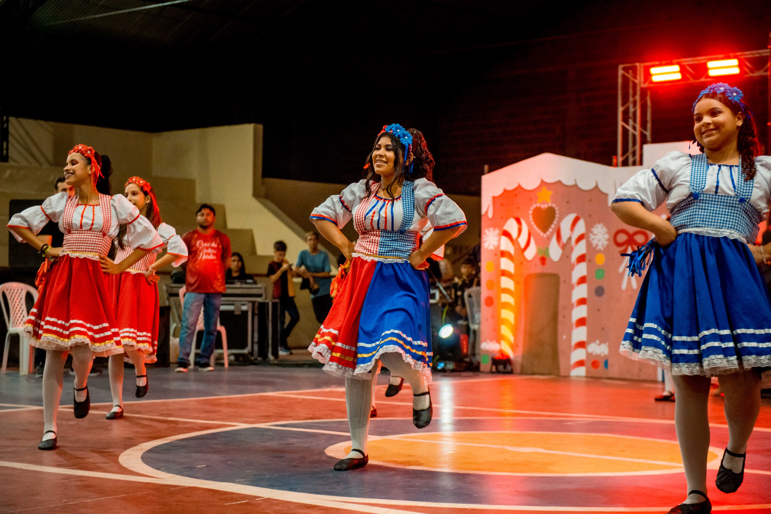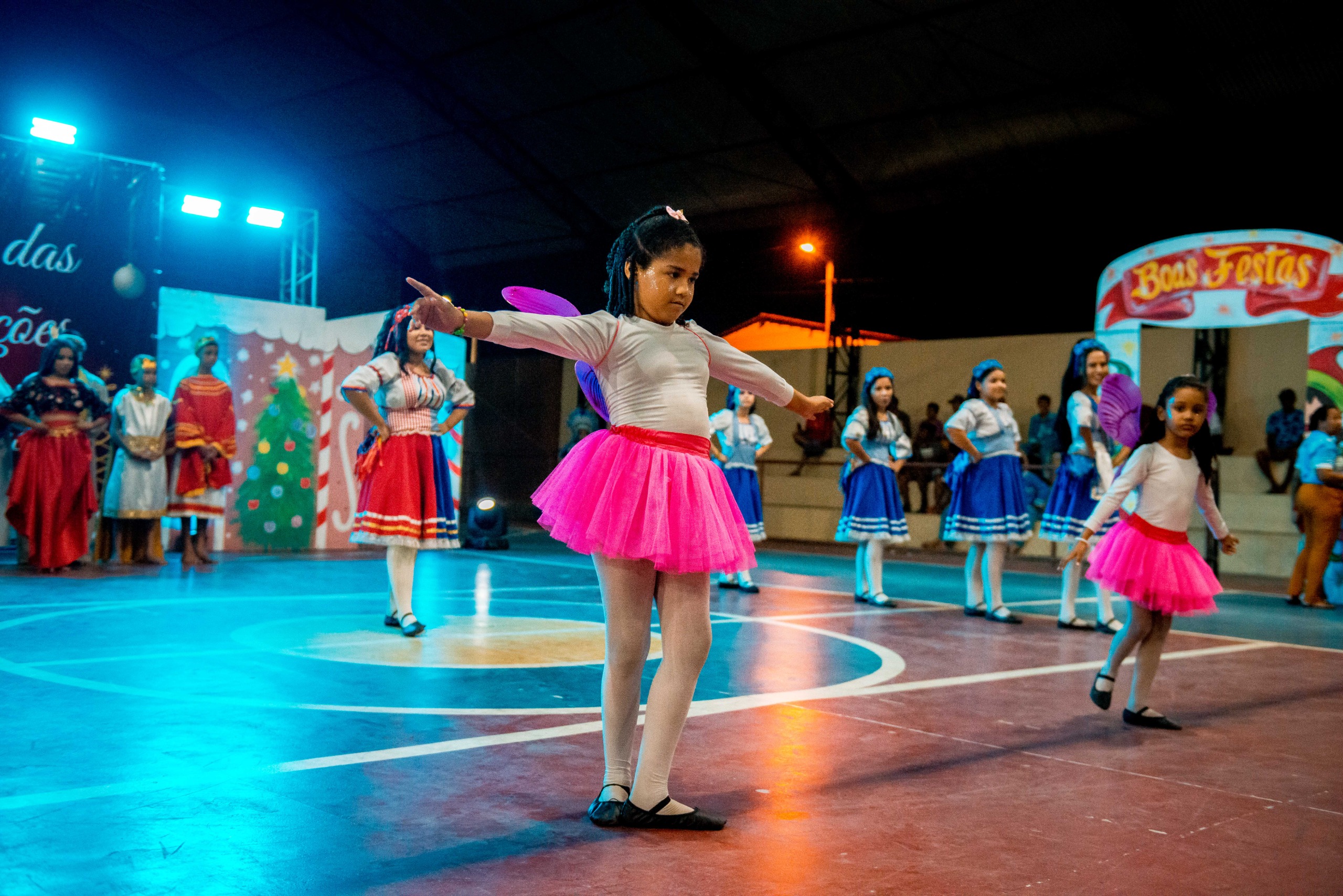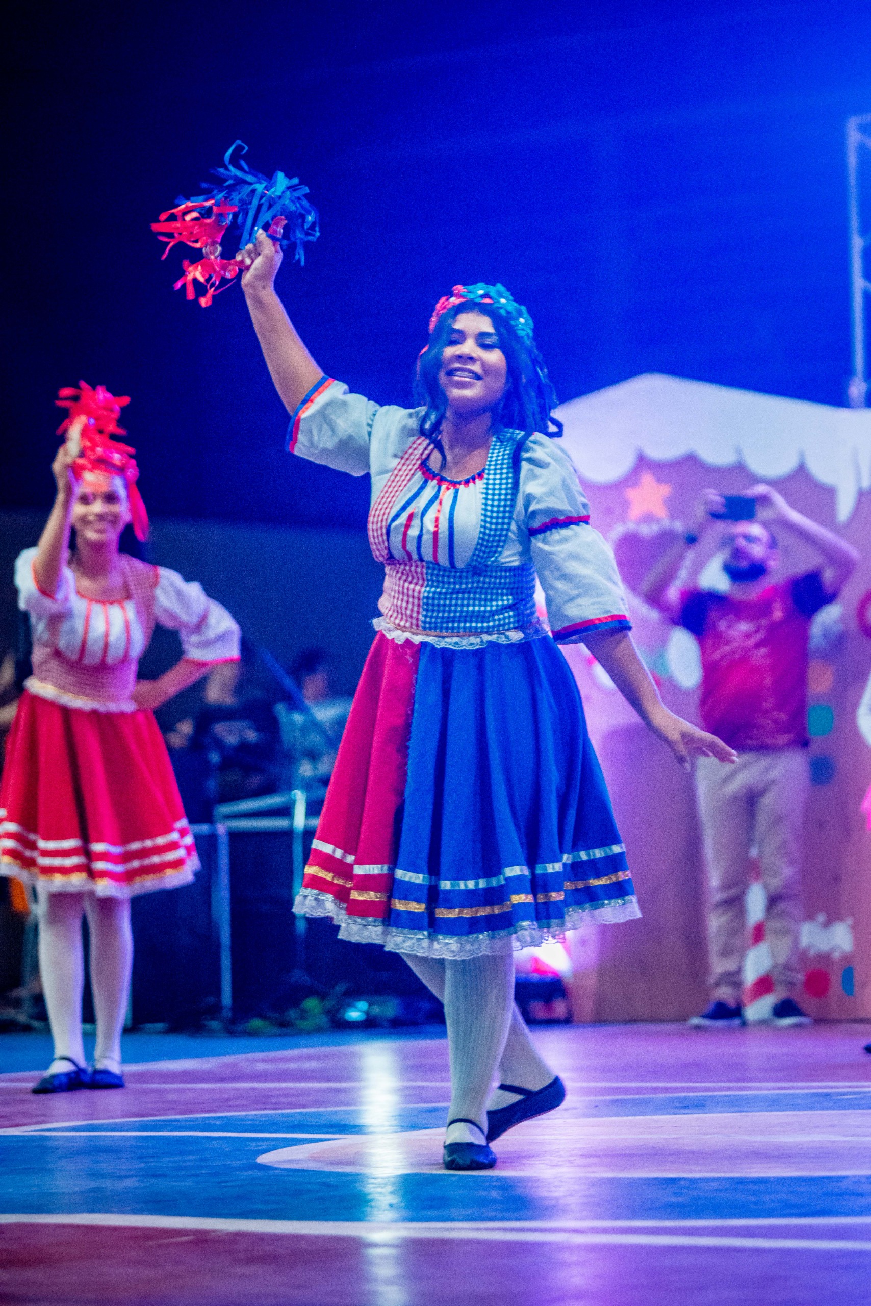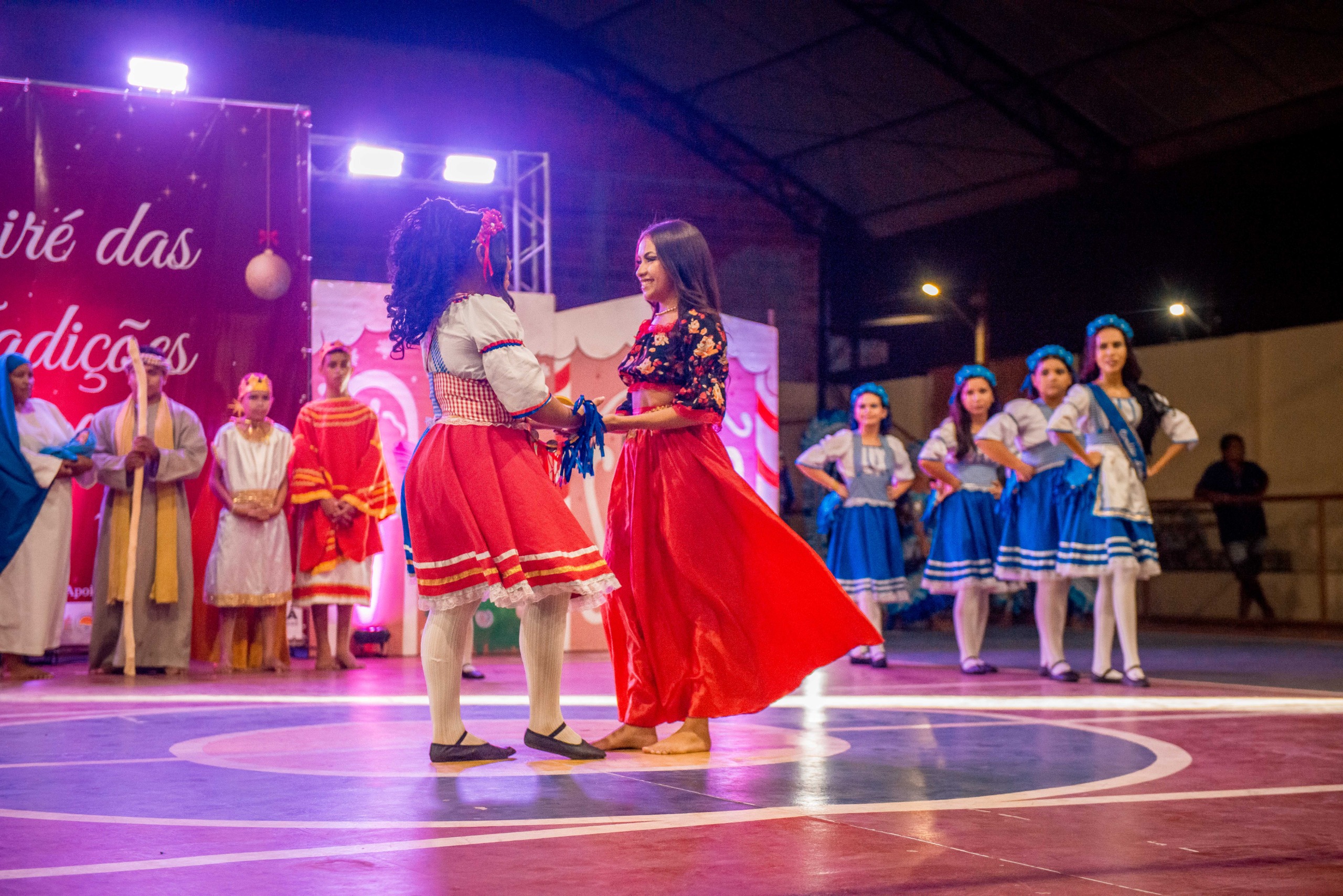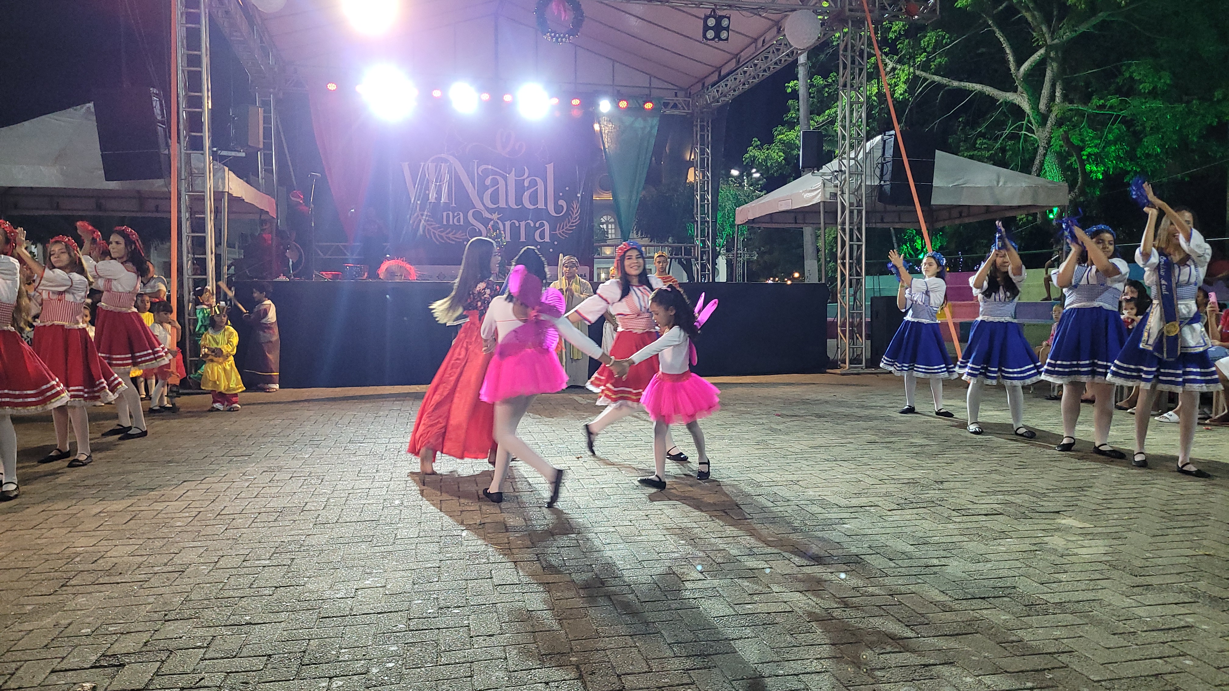 Aproximadamente 25 pessoas formam o nosso pastoril, entre dançarinas, atores e produção.