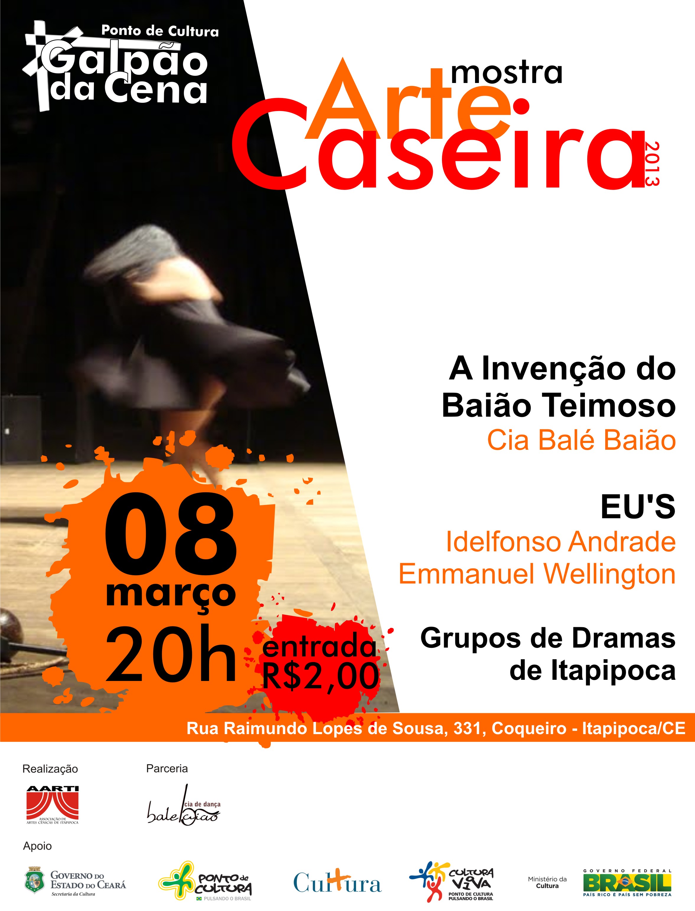 A Associação de Artes Cênicas de Itapipoca – AARTI, desde 2014 é a proponente oficial do Festival Nacional de Dança do Litoral Oeste, por meio de parceria com a Secretaria de Cultura do Estado do Ceará (MECENAS). O festival acontece em parceria com as prefeituras de Itapipoca, Paracuru e Trairi e com as demais entidades/ associações de dança atuantes nas referidas cidades.