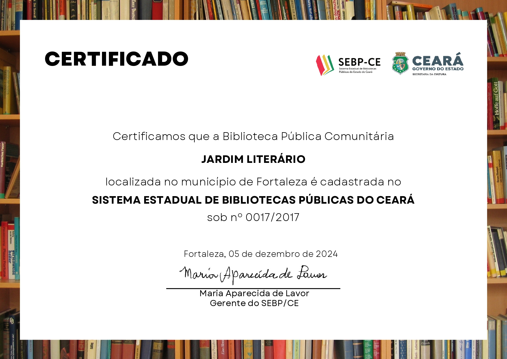 A Biblioteca Comunitária Jardim Literário busca desenvolver atividades de incentivo a leitura para crianças e adolescentes, de forma lúdica e criativa, por meio das práticas de mediação de livros. Fundada em 2013, parte do Projeto União e integrante da Rede de Leitura Jangada Literária.As atividades da biblioteca são voltadas para um público variado que contempla de crianças até idosos, com a proposta de impactar positivamente na alfabetização e letramento da comunidade infanto juvenil, bem como melhorar o rendimento escolar, dando disponibilidade a textos culturais e históricos, estimulando a imaginação, observação, reflexão, escuta e leitura.