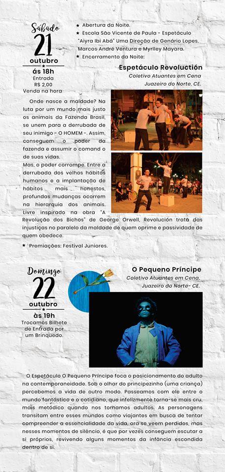 Participação do curso avançado em Teatro, realizado pelo projeto de extensão em teatro da Universidade Regional do Cariri- URCA de Novembro de 2009 a julho de 2010.