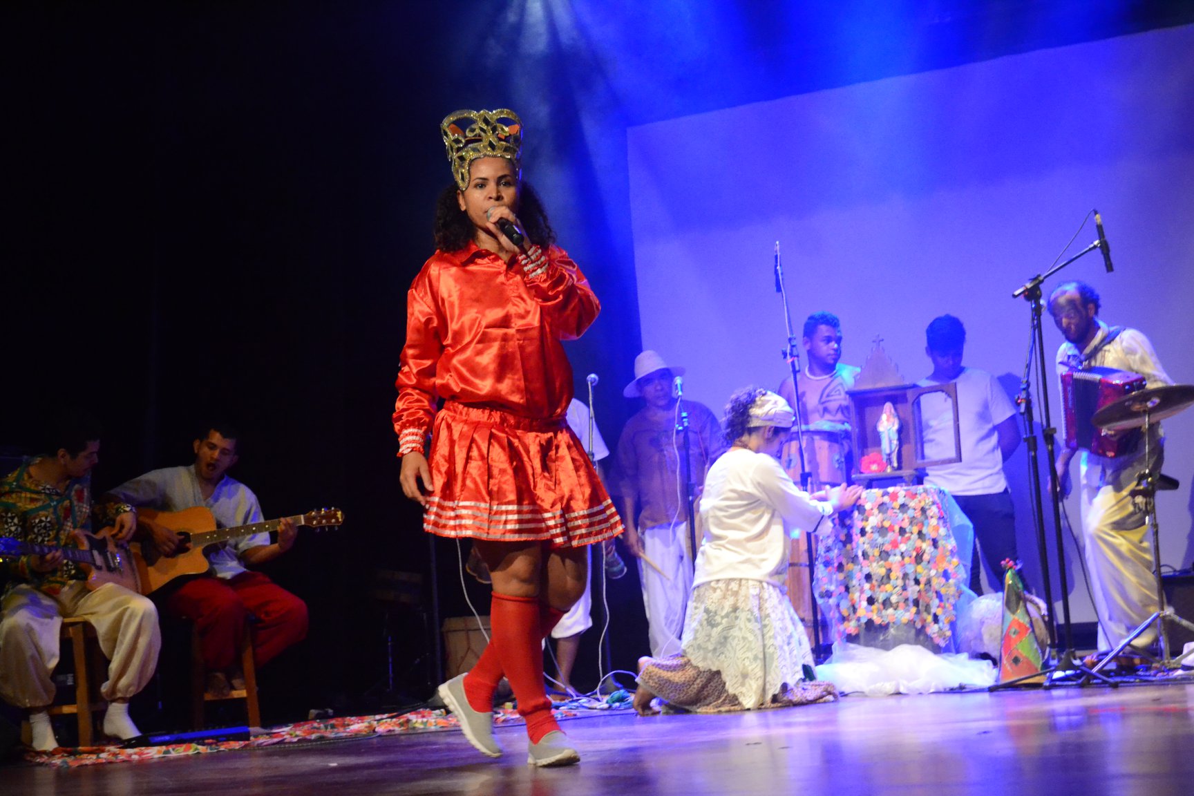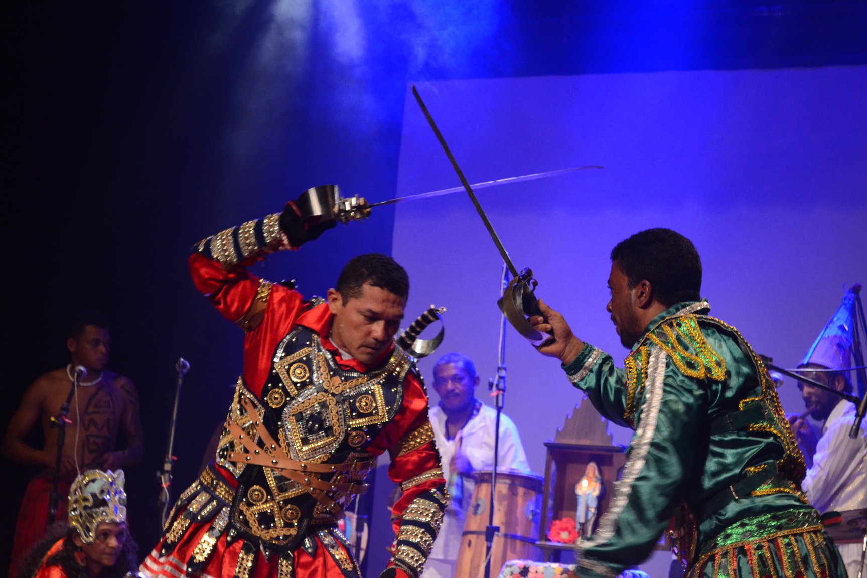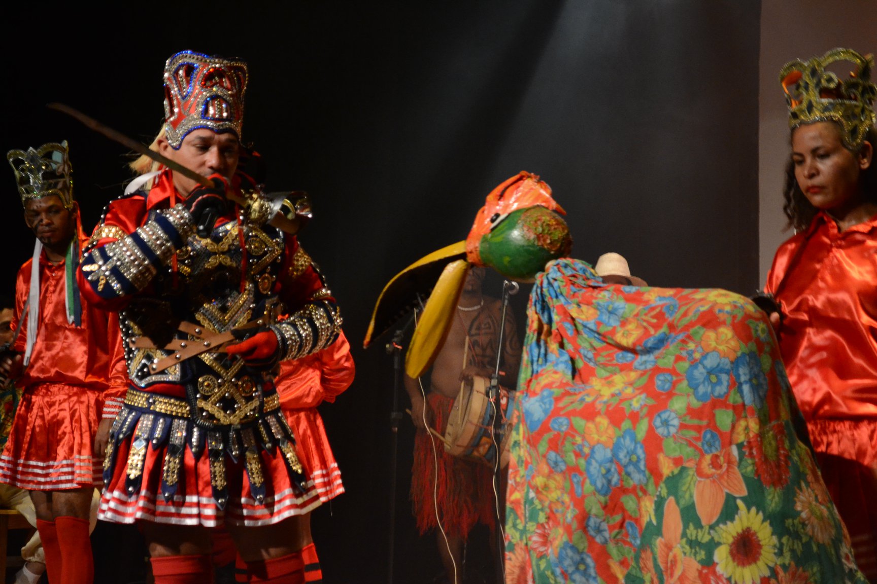 Permeia o sagrado e o profano no universo brincante com elementos das culturas nativas, afrobrasileiras e mouriscas.