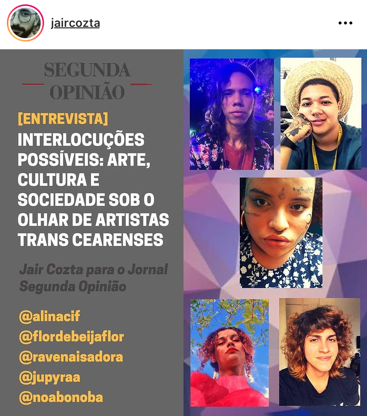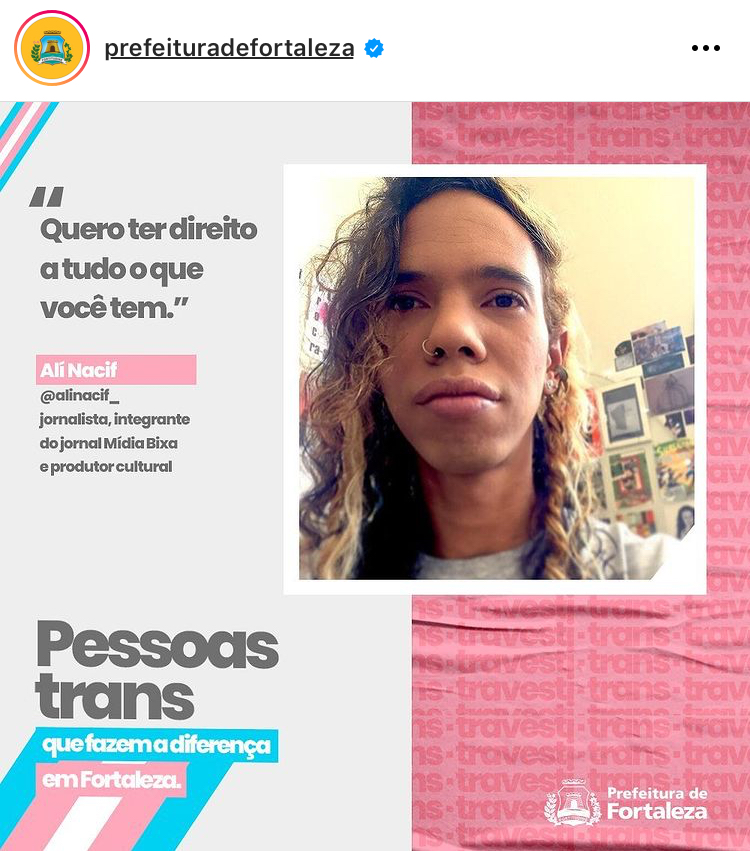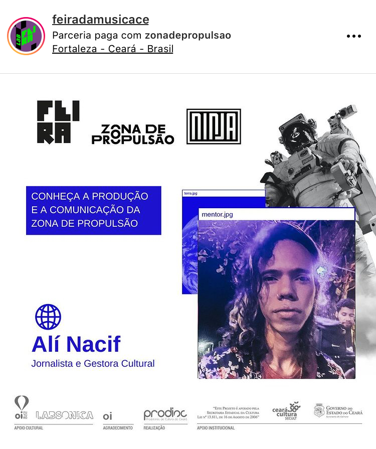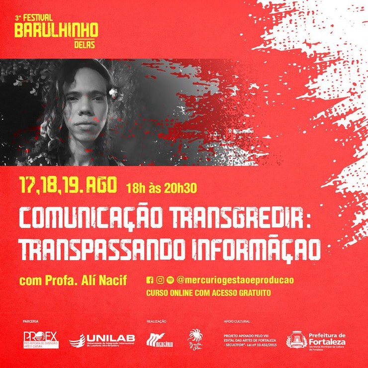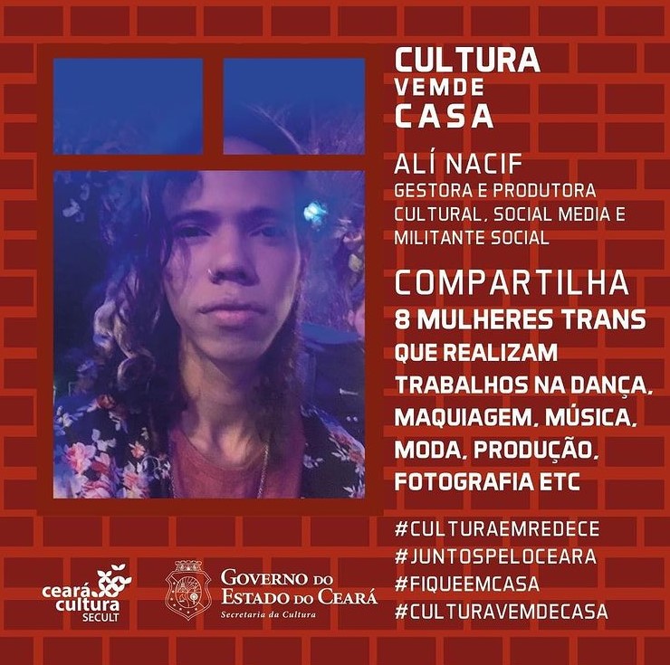 Alí Nacif, trans, negra, jornalista e ativista cultural. Fotógrafa e entusiasta em dados e sistemas operacionais da segurança de informação. Integrou a rede Fora do Eixo, Mídia Ninja.Experiência em grandes festivais culturais pelo Brasil. Já fez parte da Secretaria da Cultura do Estado do Ceará, Rede Cuca e Secretaria Municipal da Juventude, com último trabalho no Instituto Juventude Inovação, onde coordenou a equipe de comunicação. Paraibana, e filha do mundo. Já circulou por quase todo o Brasil (falta apenas dois estados - Alagoas e Roraima).