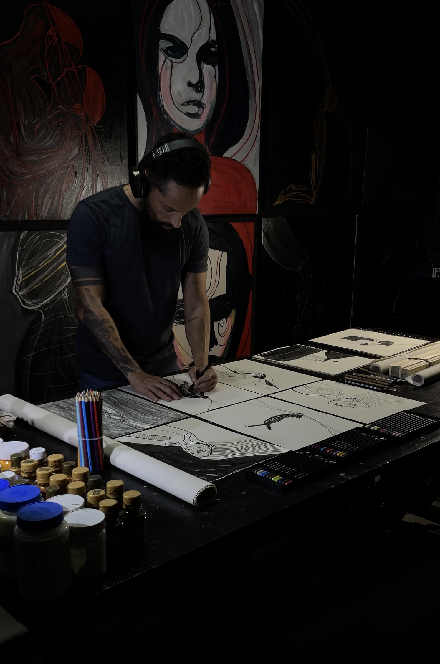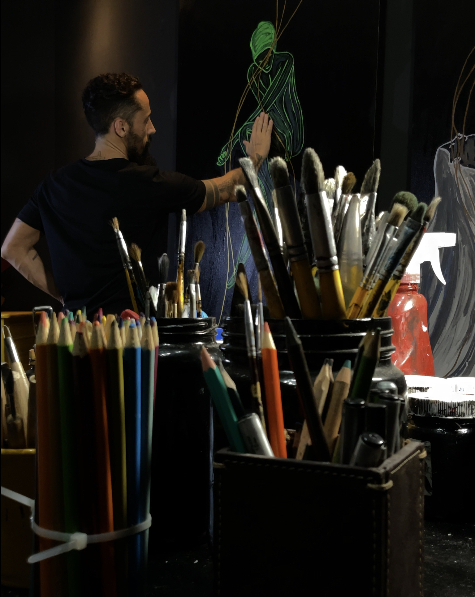 Seu trabalho consiste em técnicas variadas como: pintura a óleo, pintura acrílica, nanquim, canetas, arte digital, pinturas 3d, esculturas em clay, resinas, instalações em impressões 3d, madeira, ferro e corian.