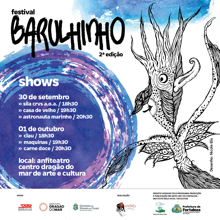 Paralelo às ações da Mercúrio, em 2018 criamos um selo musical, a Mercúrio Música, que vem lançando álbuns e singles de artistas cearenses, apoiando-os na gestão colaborativa de suas carreiras e produzindo seus shows, tornando-se uma das principais referências do estado no apoio à cena musical independente e experimental.