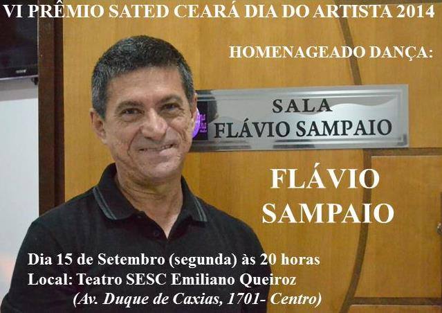 FLAVIO SAMPAIO é um artista da dança, professor de balé, diretor, pesquisador, Doutor Honoris Causa pela Universidade Federal do Ceará. Nasceu em Paracuru, no Estado do Ceará em 05 de agosto de 1954.FORMAÇÃO