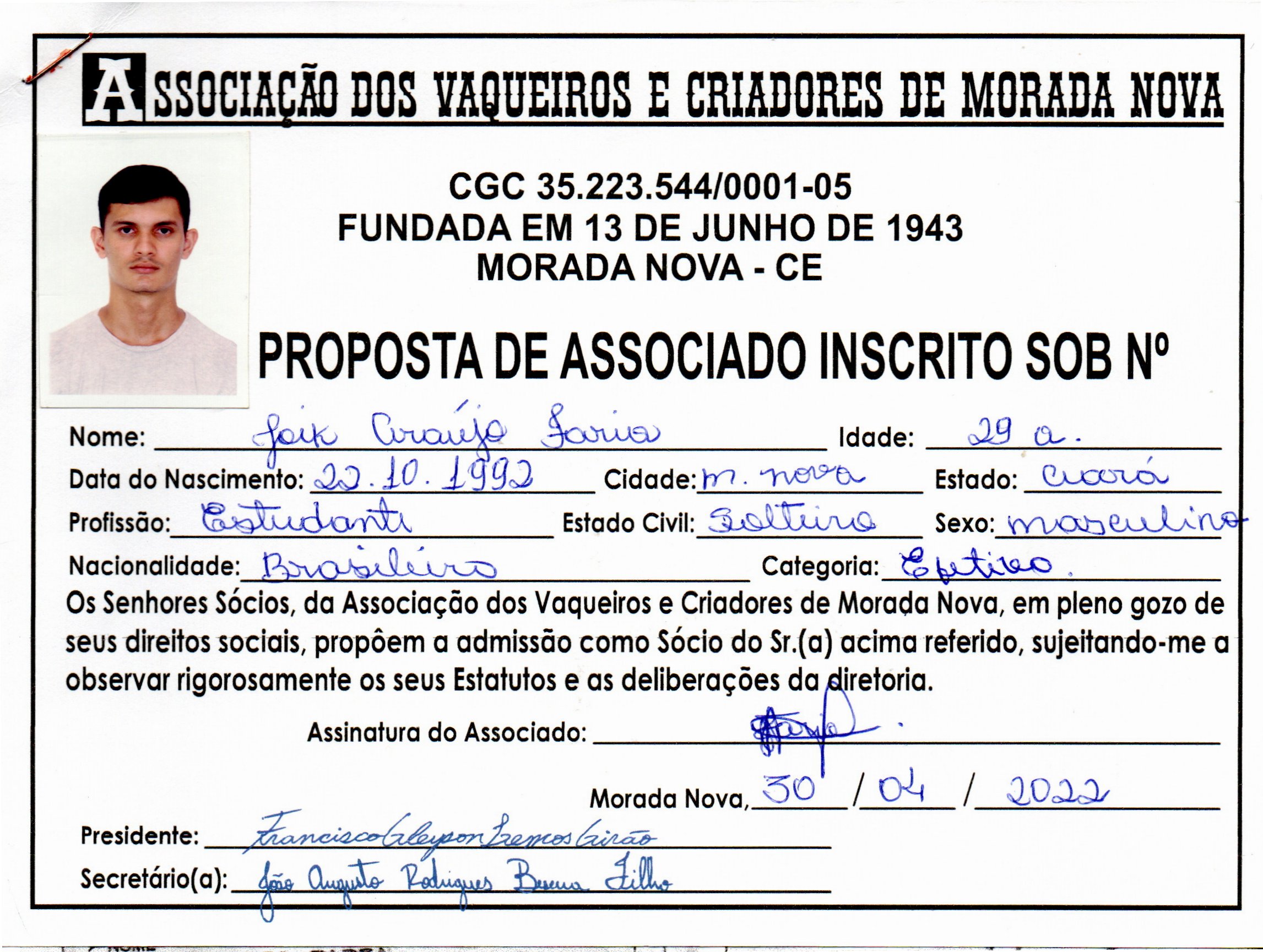 Atualmente presta serviços a Associação dos Vaqueiros e Criadores de Morada Nova - AVCMN, onde trabalha diretamente voltado ao meio cultural do vaqueiro. No tocante ao teatro, participou de peças como O Santo e a Porca, adaptação de Ariano Suassuna, como diversas outras obras. É artista, produtor e desenvolvedor de projetos culturais, voltados a cultura popular, especificamente a cultura vaqueira e ao movimento junino de nossa cidade. Nos últimos anos, tem participado ativamente da produção e execução da Festa do Vaqueiro de Morada Nova/CE, evento de cunho Cultural que busca celebrar a vida e as conquistas do homem do campo, o vaqueiro. No movimento junino, atua em diversos setores, desde a produção à execução de todo processo temático do Grupo Junino Ana Moça. Deste último compõe não só seu quadro diretório, mas também faz parte do grupo de brincantes que abrilhantam todas as apresentações desta Junina, que há 26 anos realiza seus projetos/apresentações nos festivais de quadrilhas juninas.No que se refere ao vaqueiro, este, iniciou seu trabalho neste meio cultural em 2016, ano que passou a fazer parte da equipe técnica organizadora da Festa do Vaqueiro, e dentro deste meio passou a amar ainda a cultura do homem do campo. Diante de todo esse movimento cultural, o mesmo passou a fazer parte do quadro dos mais de 900 associados deste âmbito cultural.