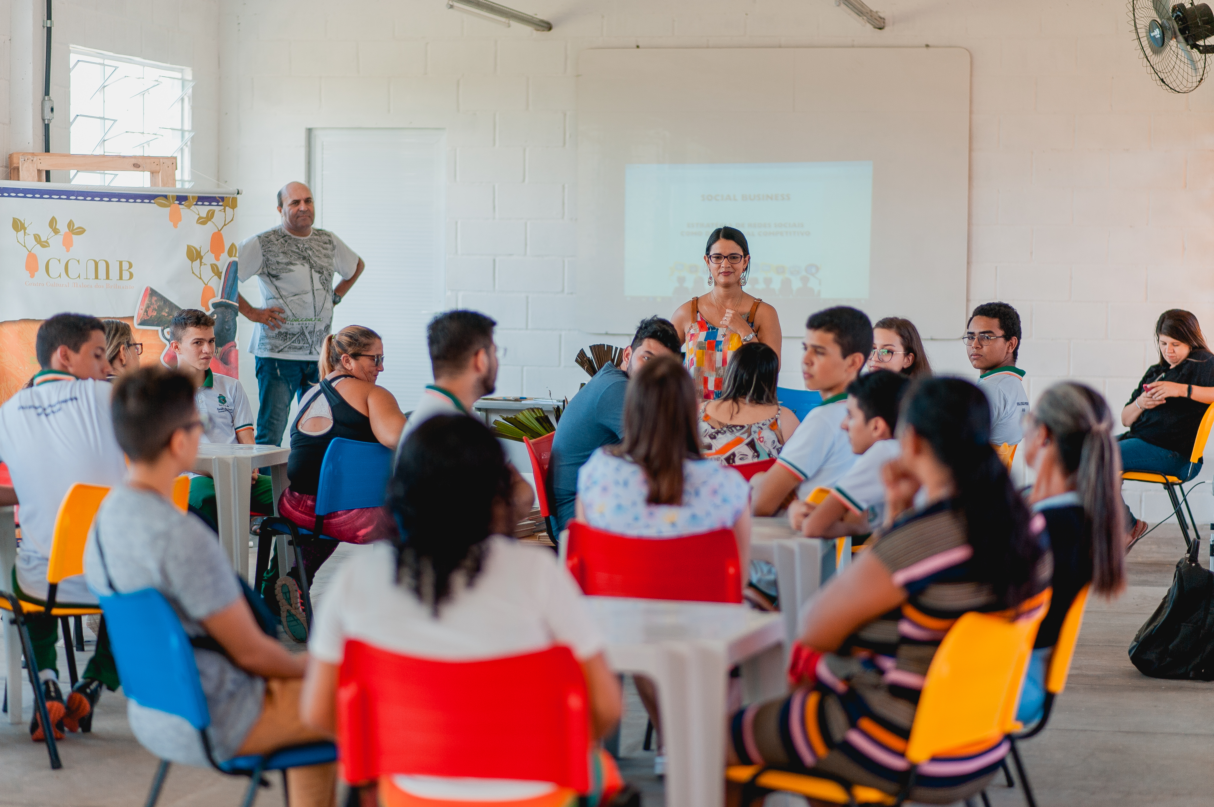 Além disso, oferta programação variada com produção local e regional em seus diversos espaços que incluem Teatro, Anfiteatro, Jardim, Pátio, Biblioteca, Sala de Exposição e Sala Multiuso e Laboratório de Empreendedorismo e Inovação. O Centro Cultural Maloca dos Brilhante - CCMB é um espaço aberto a jovens, adultos, idosos e crianças pacajuenses, onde se encontram e aprendem uns com os outros.
