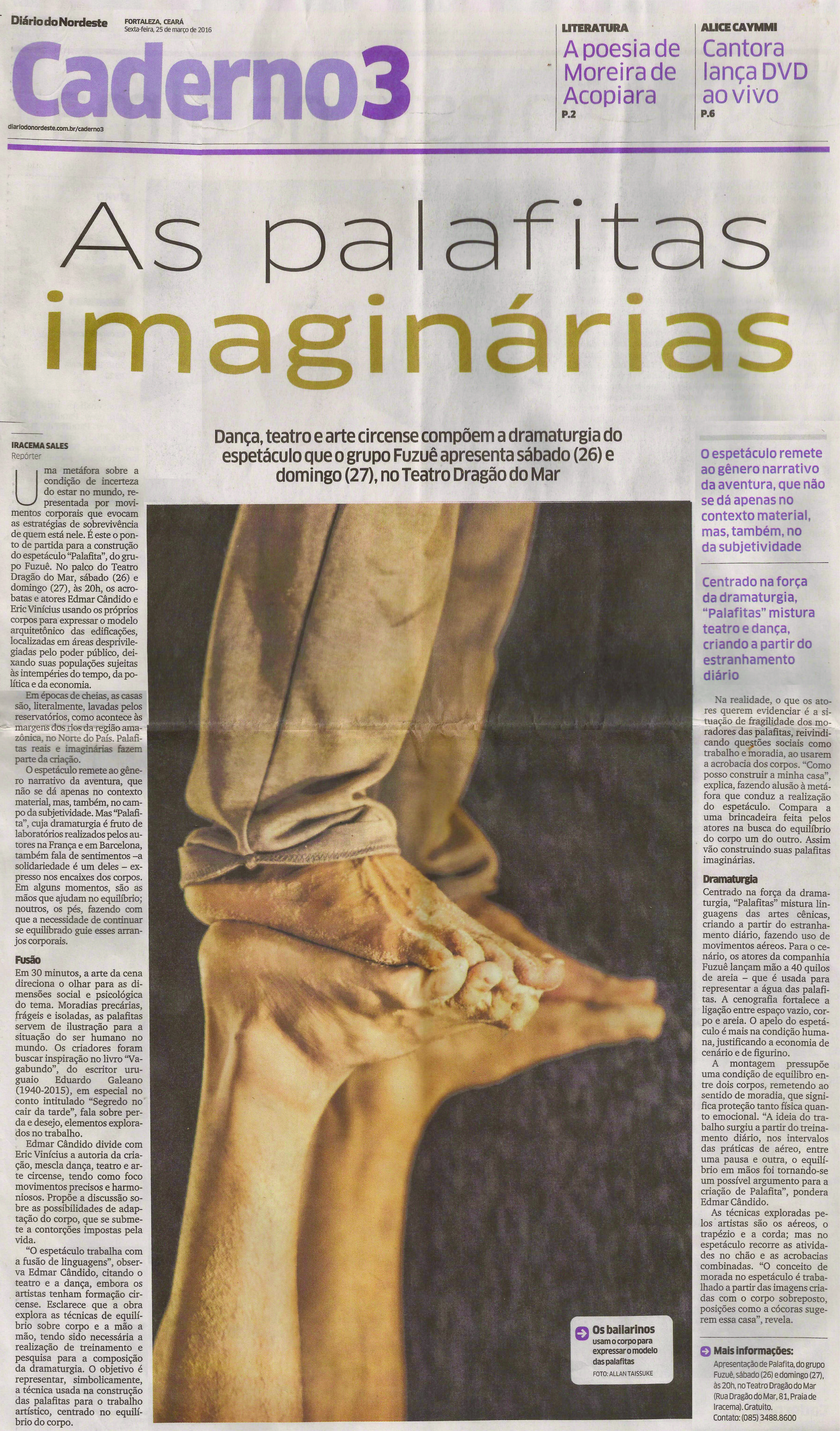 A ARTELARIA PRODUÇÕES é uma associação, sem fins lucrativos, que trabalha com produção artística e formação de novos criadores. Idealizada em 2003 por um grupo de atores, bailarinos, circenses e contadores de histórias( arte-educadores), formados pelo Curso de Arte Dramática (CAD) da Universidade Federal do Ceará (UFC) e pelo curso técnico em dança do SENAC IACC. A associação institucionaliza suas ações em 2007, atuando nas áreas do circo, dança, teatro, música e artes visuais - performance , incentivando a formação de plateia através da circulação de espetáculos, intercâmbios, residências e de ações formativas na cidade de Fortaleza e no interior do estado do Ceará. Em 2017 passa a ocupar o espaço Galpão da Vila junto a outros coletivos artísticos realizando a gestão do primeiro Co Laboratório em Artes Circenses.Vídeos