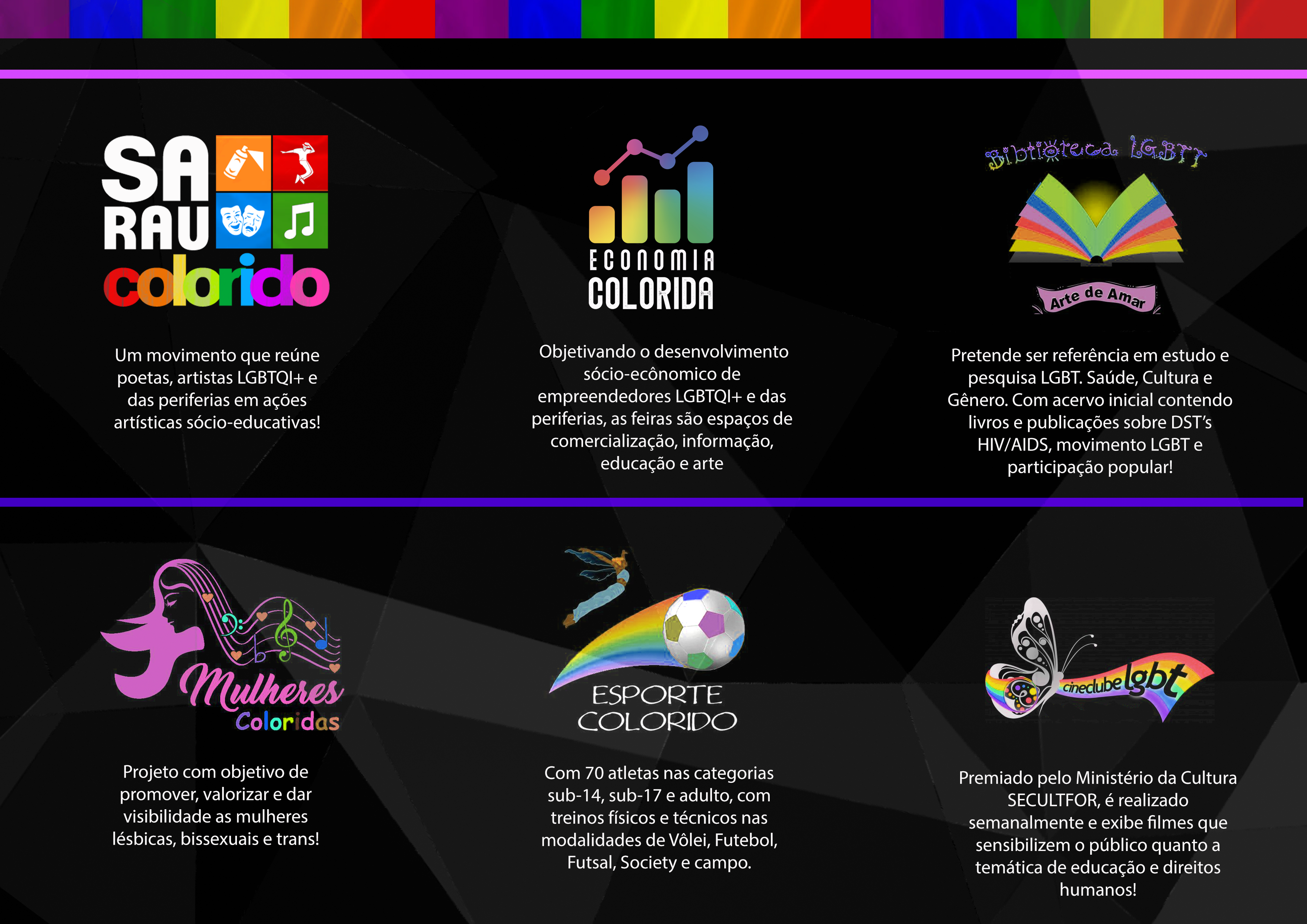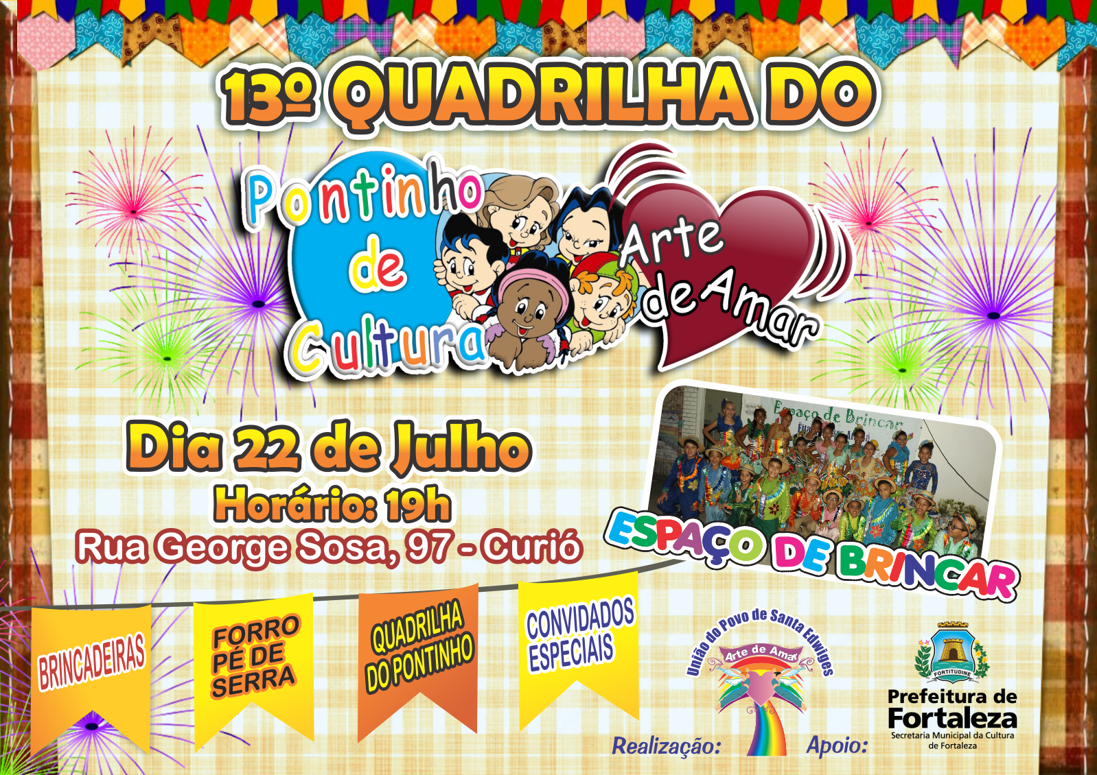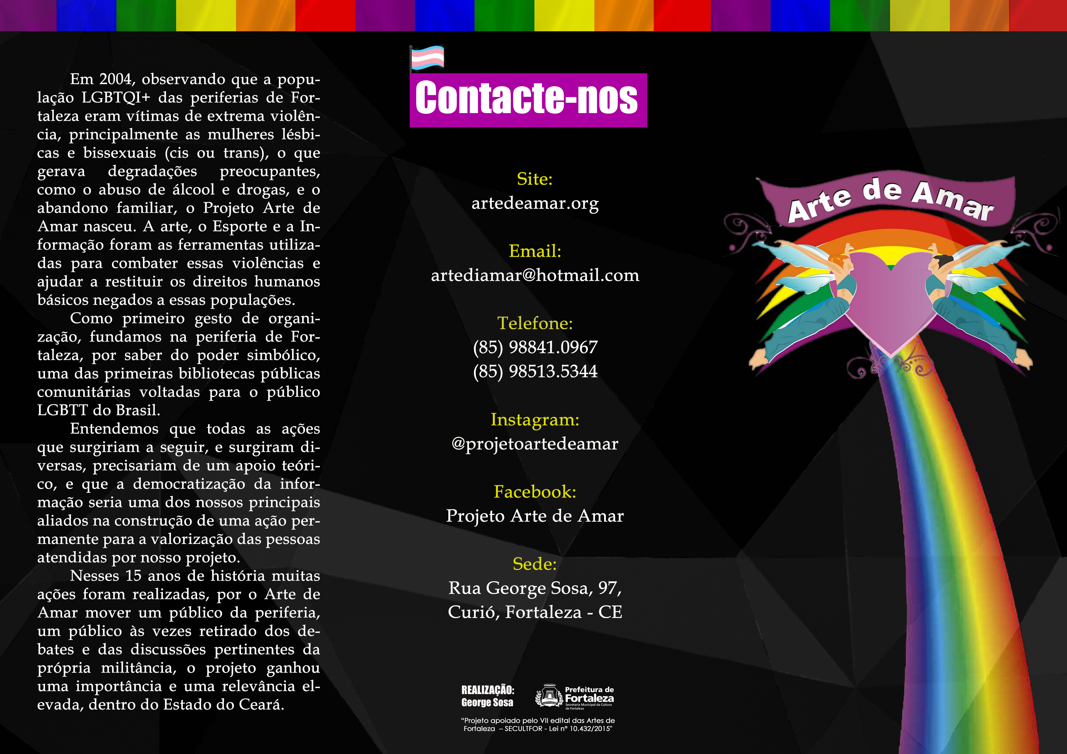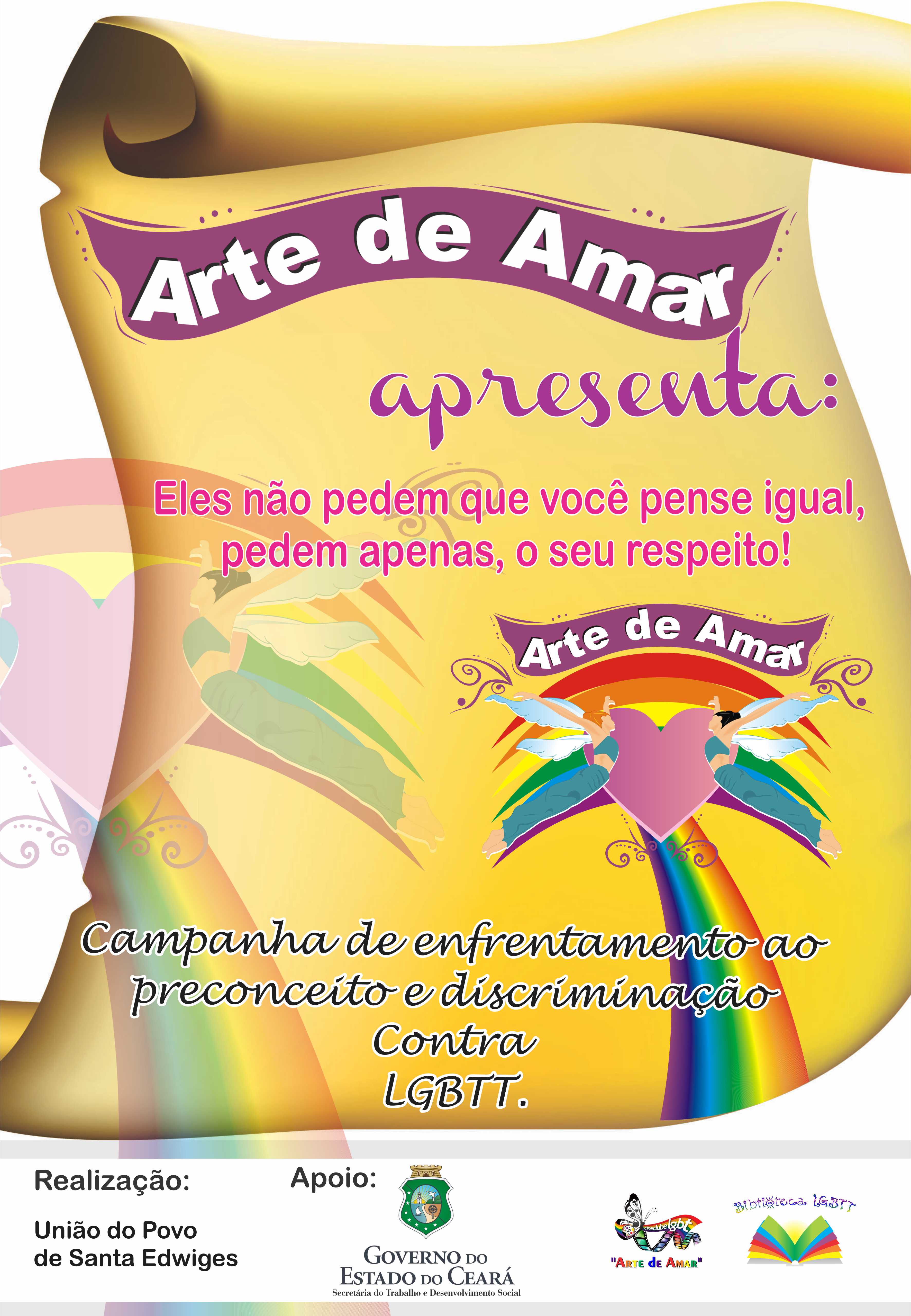 A União do Povo de Santa Edwiges ,entidade Filantrópica sem fins Econômicos é sediada no bairro Curió, para suprir as necessidades esportivas , sócio cultural e informação em uma região desprovida de equipamentos culturais, criou o Ponto de cultura LGBTQ+ Arte de Amar um espaço aberto e gratuito de estimulo a Arte e a Leitura para toda comunidade. Um espaço diferenciado que integra crianças , jovens, adultos e idosos onde há troca de informações e experiências que se iniciam nas oficinas e atividades de leitura e construção de histórias. Em 2004 esta ONG lançou o Coletivo Projeto Arte de Amar com atividades esportivas e sócio culturais para este público dentre as quais se destaca o Ponto de Cultura LGBTQ+ , Biblioteca LGBTTQ+ LUMA DE ANDRADE , Cine Clube Arte de Amar , Pontinho de cultura Espaço de brincar , TV WEB Arte de Amar e a Liga de Futebol Feminino das Periferias de Fortaleza ..A União do Povo de Santa Edwiges desenvolve também desde 1989, atividades educativas com crianças da comunidade , ressaltar que nossa sede é própia ofertando estudio, palcos , auditório e equipamentos aos artistas e trabalhadoras da cultura de forma gratuita desde que cadastrados e parceiros.Vídeos