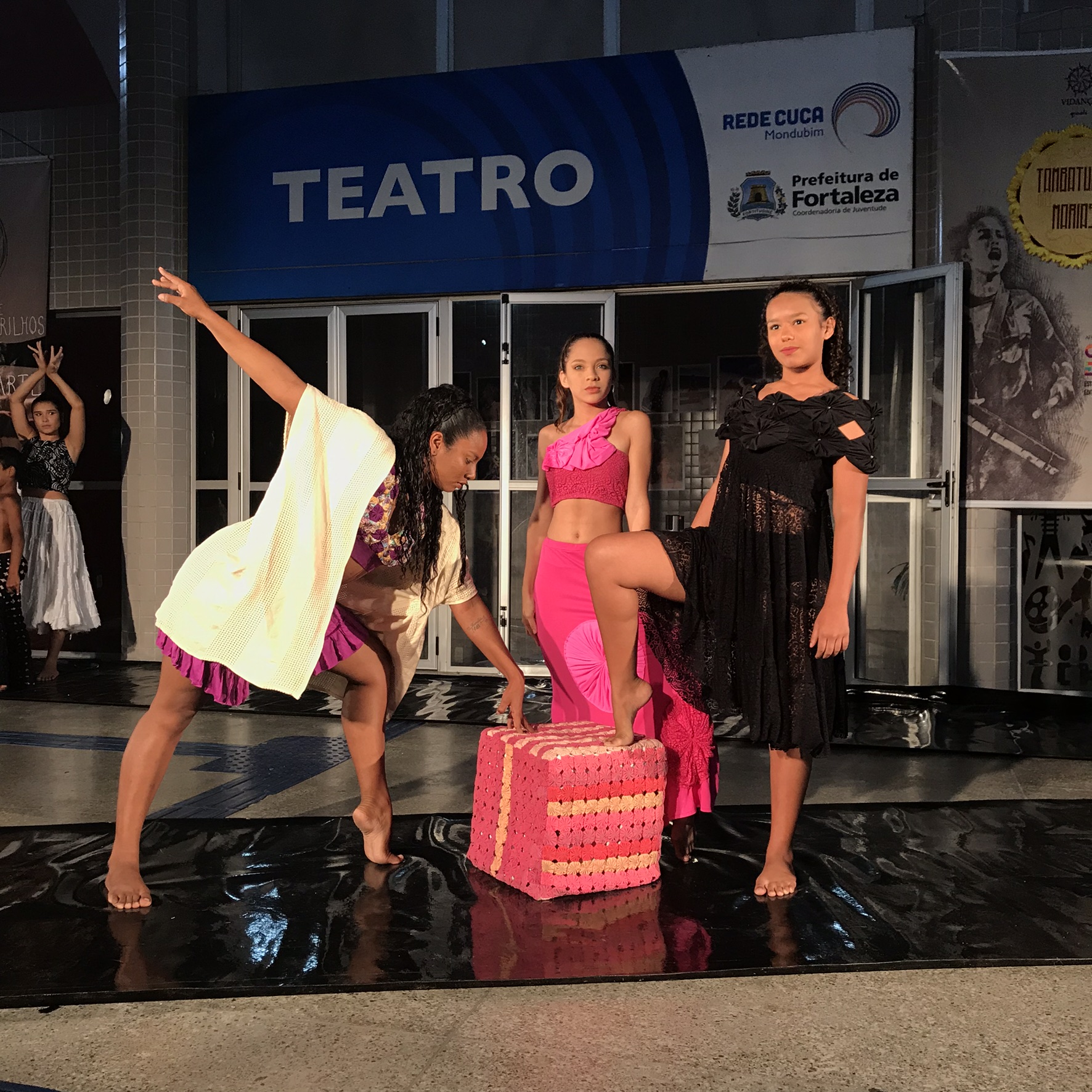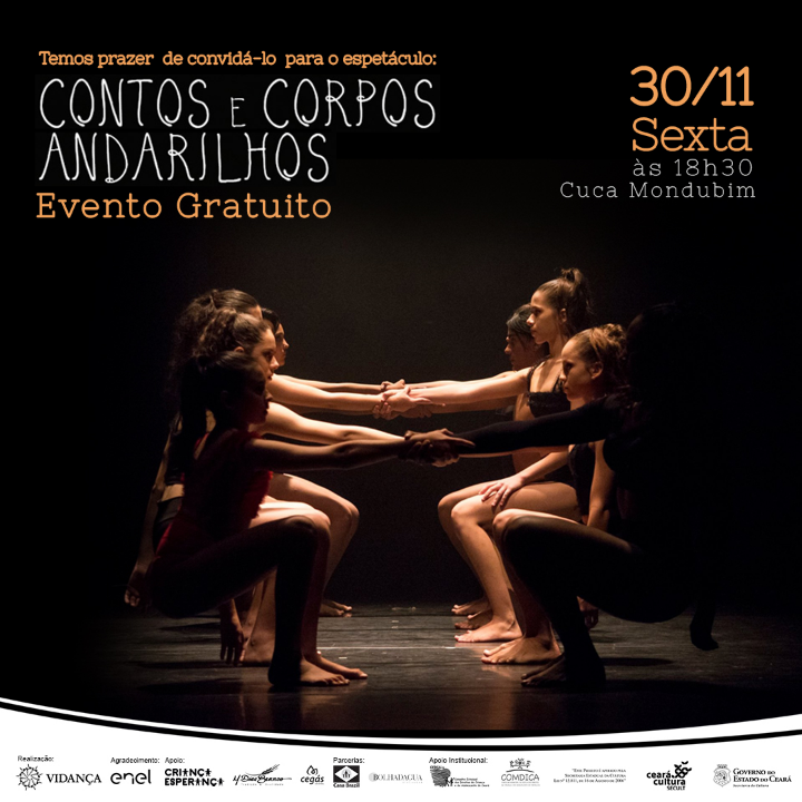 “Contos e Corpos Andarilhos” é um espetáculo que aborda as vivências das crianças, adolescentes e jovens do bairro Vila Velha. O balé foi exibido nos palcos do teatro do Cuca Mondubim e contou também com a apresentação da releitura do Coco de Roda, “Tambatuque DasMarias” (contemplado pelo Criança Esperança e Cultura Infância) , “Tambatuque do Vidança” e desfile com peças produzidas pelas nossas alunas do curso de corte e costura.Vídeos