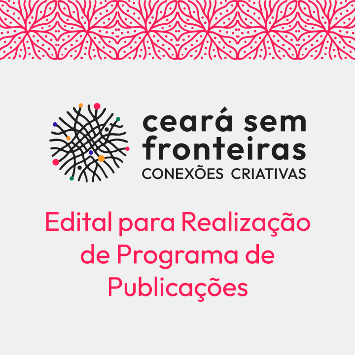 A OSC Mercúrio Produções, pessoa jurídica de direito privado sem fins lucrativos, inscrita no Cadastro Nacional de Pessoa Jurídica – CNPJ sob nº 30.449.553/0001-97, organização responsável pela realização do CEARÁ SEM FRONTEIRAS – PROGRAMA DE PUBLICAÇÃO DE PESQUISAS E CONCESSÃO DE BOLSAS PARA MOBILIDADE FORMATIVA, selecionada no EDITAL PARA REALIZAÇÃO DO PROGRAMA DE PUBLICAÇÕES E CONCESSÃO DE BOLSAS PARA MOBILIDADE FORMATIVA contemplado no Plano Plurianual - PPA 2024-2027, por meio do Programa 133, divulga, em regime de parceria com a Secult Ceará o CEARÁ SEM FRONTEIRAS – CONEXÕES CRIATIVAS – Edital para Realização de Programa de Publicações, desenvolvendo ações de seleção e editoração de 10 livros para publicação em formato impresso e e-book.