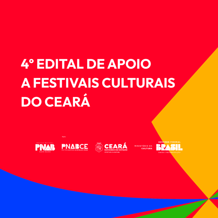 O 4º Edital de Apoio a Festivais Culturais do Ceará integra as ações de fomento à cultura desenvolvidas pelo Estado, em consonância com a Política Nacional Aldir Blanc de Fomento à Cultura, e tem como finalidade fortalecer e qualificar o circuito de festivais culturais já existentes no território cearense. Por meio deste edital, a Secretaria da Cultura do Estado do Ceará busca apoiar financeiramente projetos de iniciativa de terceiros que promovam a difusão artística e cultural, estimulem o interesse público e contribuam para a efetivação dos direitos culturais.