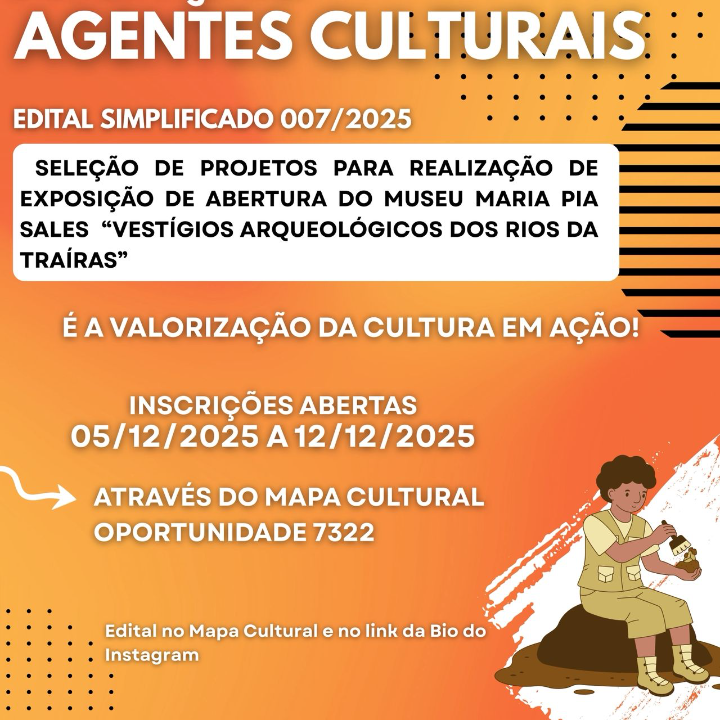 EDITAL SIMPLIFICADO DE CHAMAMENTO PÚBLICO Nº 007/2025 SELEÇÃO DE PROJETOS PARA REALIZAÇÃO DE EXPOSIÇÃO DE ABERTURA DO MUSEU MARIA PIA SALES “VESTÍGIOS ARQUEOLÓGICOS DOS RIOS DA TRAÍRAS”,